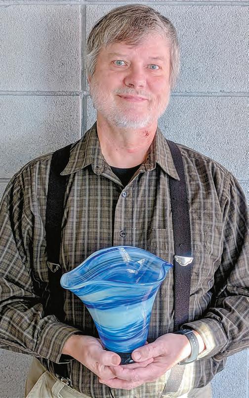 Rand Whillock, a glass blower and North Oaks resident, also said that nature is his inspiration. Whillock and his wife Elizabeth have been blowing glass for 15 years. He will be selling colorful glass bowls, vases, tumblers and platters. He will also have glass fusing items that consist of pieces of glass cut into shapes and molded onto flat surfaces to create a picture. “I’m so excited to be part of this event,” said Whillock, “especially to be creating a piece of blown glass inspired by a child’s art while they were in the hospital.”