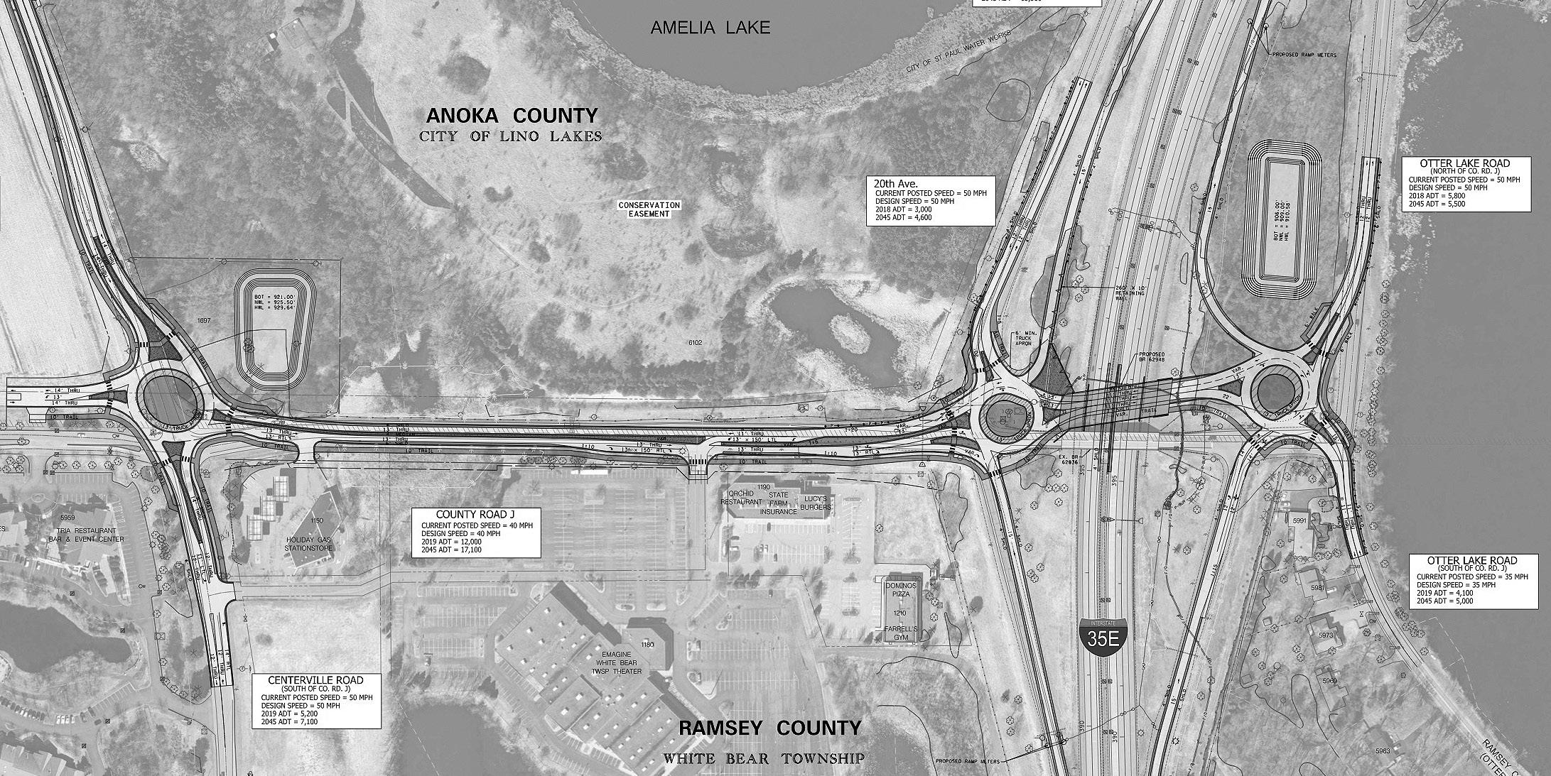 Anoka County Assistant County Engineer Jerry Auge further emphasized the changes during the open house. “We’re working to improve the intersection at Otter Lake Road,” said Auge. “Right now, it’s a T-intersection that will turn into a roundabout. It’ll connect into the east side ramps, both the northbound off-ramp and the northbound on-ramp to I-35E.” Auge said this would give greater access to motorists coming from the road to I-35E.