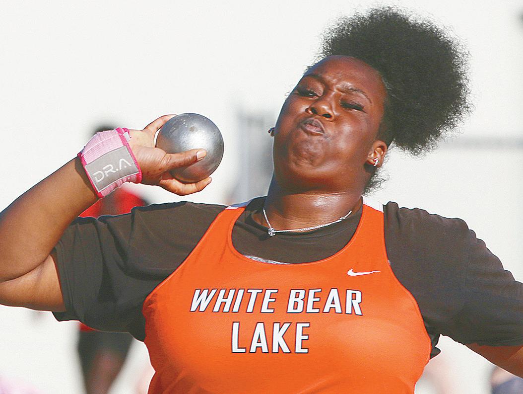 teams in the Suburban East Conference meet at Forest Lake. The top three were Stillwater, Mounds View and Forest Lake. The Bears had no champions. Top finishes were second place by Josephine Mlejnek in high jump with 5-0, and third by Lys-Aurele d’Almeida in the 100 with 12.70. Placing fourth were Karen Enow in shot put (36-1.75) and Kiera Windish in discus (107-11). Rosalie Sommars was eighth in the 3200 (11:53.58). The Bears placed second in the 4x400 with Grace Bailey, Gabrielle Bohrer, Kate Bullis and d’Almeida (4:09.60), and third in the 4x200 with Sophia Haley, Madelyn Compton, Bailey and Alyssa Hamlin (1:47.18). They were fourth in the 4x400 and fifth in the 4x100.