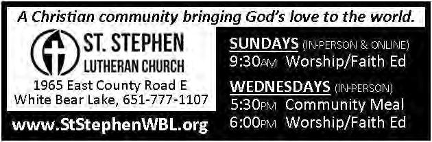 of wine to sip as you shop. Don’t miss the gently used jewelry sale, raffles, bingo, free kid’s games and Cup and Cone treats. For more information go to stmaryswbl.org or call 651-429-7771, option 1.
