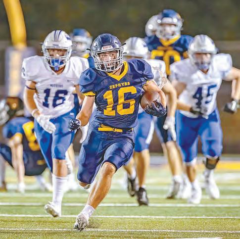 Bauman had a quarterback sack. The Zephyrs had kick returns of 33 yards by Sather, 29 by Haase and 25 by Max Strecker. Will Newman caught three passes for 27 yards.