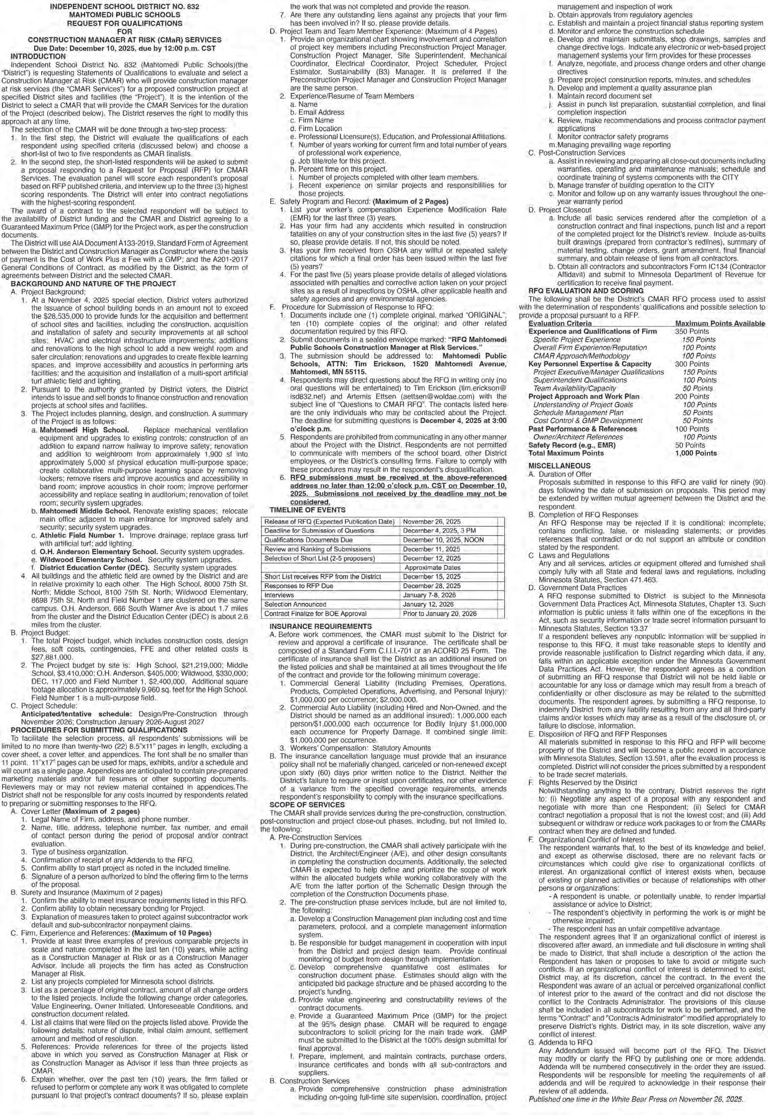 NOTICE IS HEREBY GIVEN that the City Council of the City of Mahtomedi, Minnesota (the “City”) will meet on Tuesday, December 16, 2025, at approximately 7:00 p.m., at City Hall, 600 Stillwater Road, Mahtomedi, Minnesota, in part to hold a public hearing concerning (1) the adoption of a Capital Improvement Plan (the “Plan”) pursuant to Minnesota Statutes, Section 475.521 (the “Act”), and (2) the intention to issue general obligation bonds (the “CIP Bonds”) in one or more series, at one time or from time to time, in an aggregate amount not to exceed $24,325,000 (in addition to amounts issued to finance other capital improvements under the Plan) to finance a portion of the costs of the capital improvements set forth in the Plan including without limitation the acquisition, construction and equipping of a new city hall and fire station.