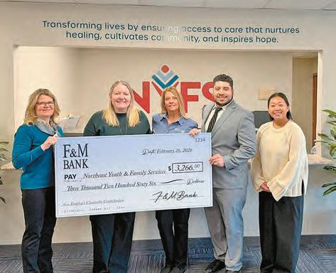 F&M Bank employees recently presented a check to Northeast Youth & Family Services (NYFS) for $3,266. In 2023, F&M Bank employees established the F&M Bank Employee Charitable Organization Match Program,