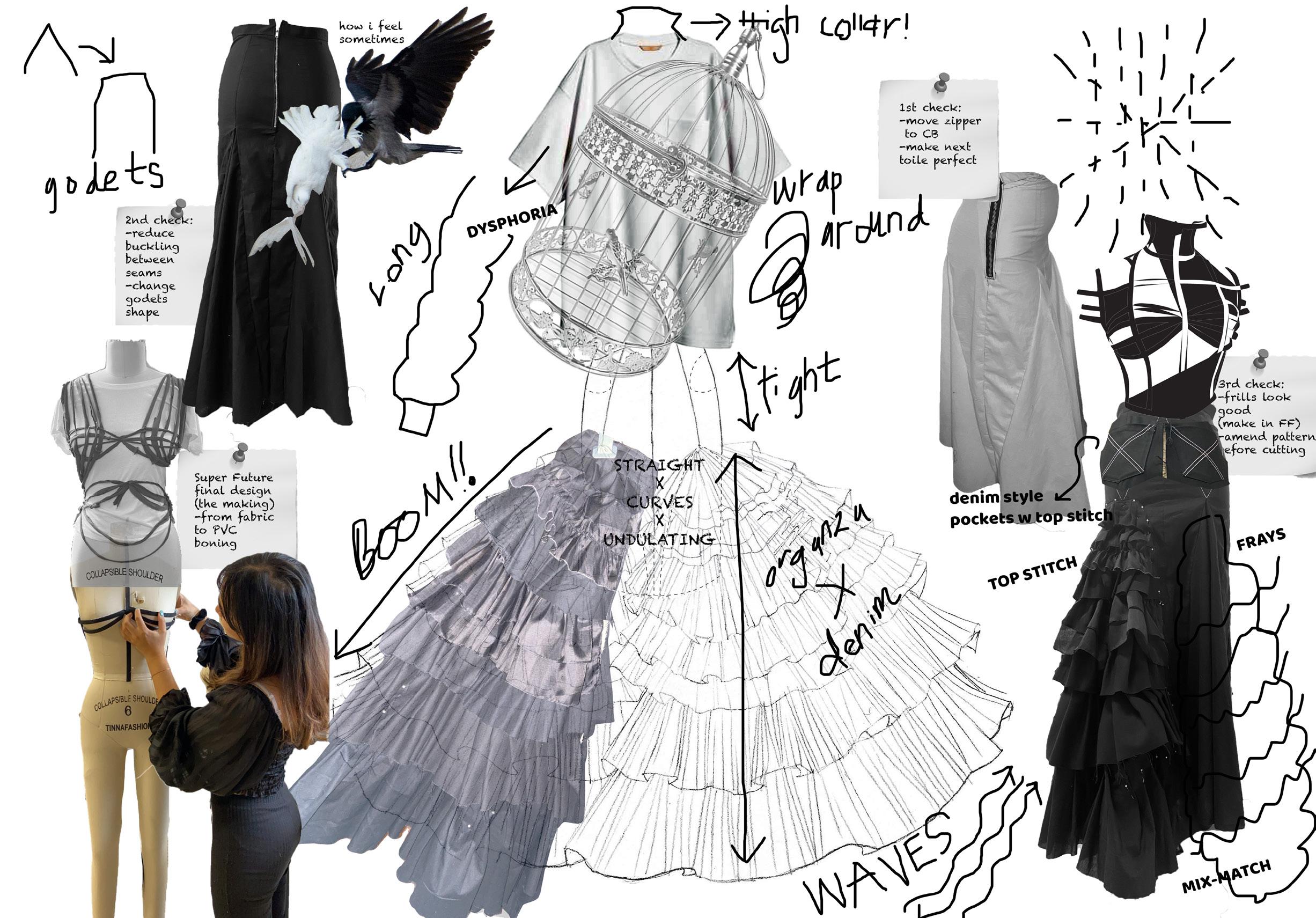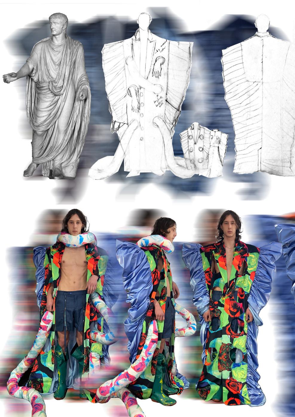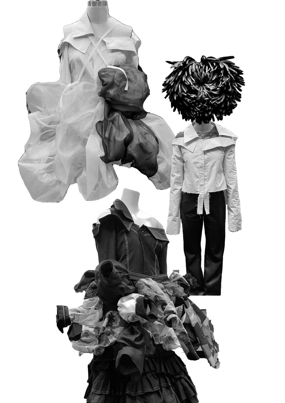 The oversized fit also reflects fashion as a form of protection and comfort. Many people wear oversized clothing to feel more confident and comfortable. By making an avant-garde design oversized, I am challenging the notion that avant-garde fashion is unwearable and unapproachable.