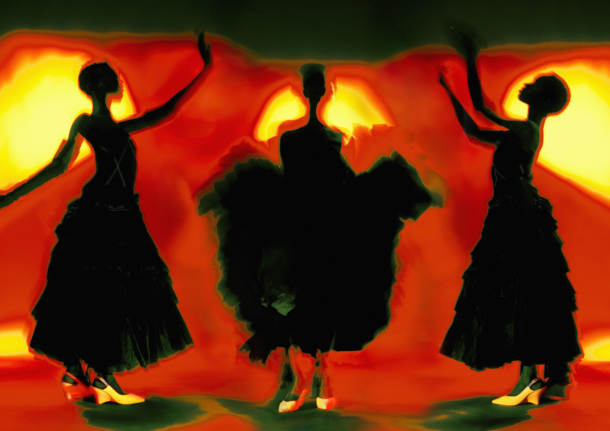 This collection showcases garments in darker silhouettes accented with pops of bright colors through the use of original prints. The first look from the collection represents life, and features a fully tailored jacket in vivid colors and ends with a look that while sculptural, is free-form and layered in scorched black organzas. The final look represents death.