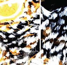 Print used in the design is developed from the designer’s original artwork. It represents the colors of honey bees and the pollens they carry on their bodies.