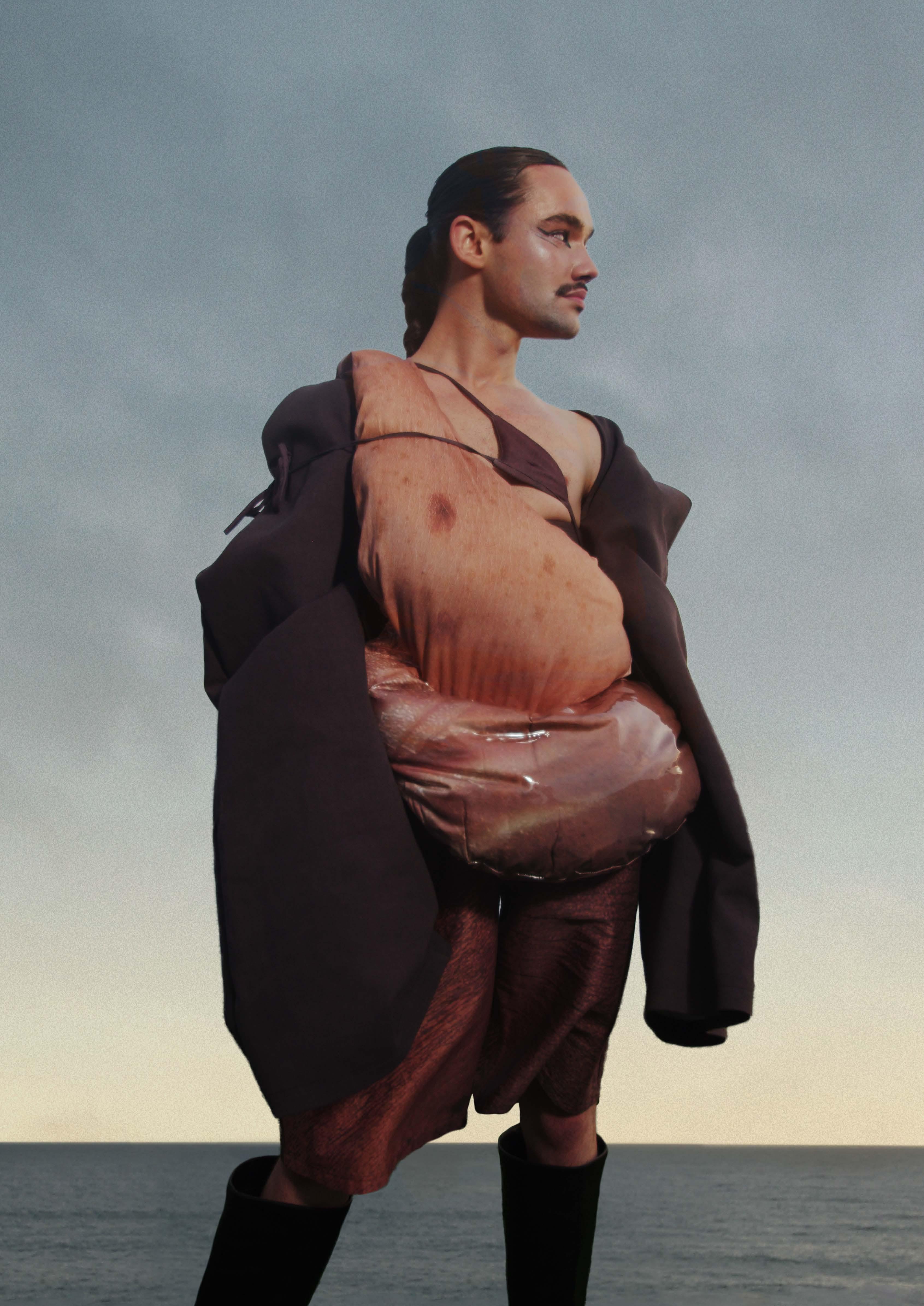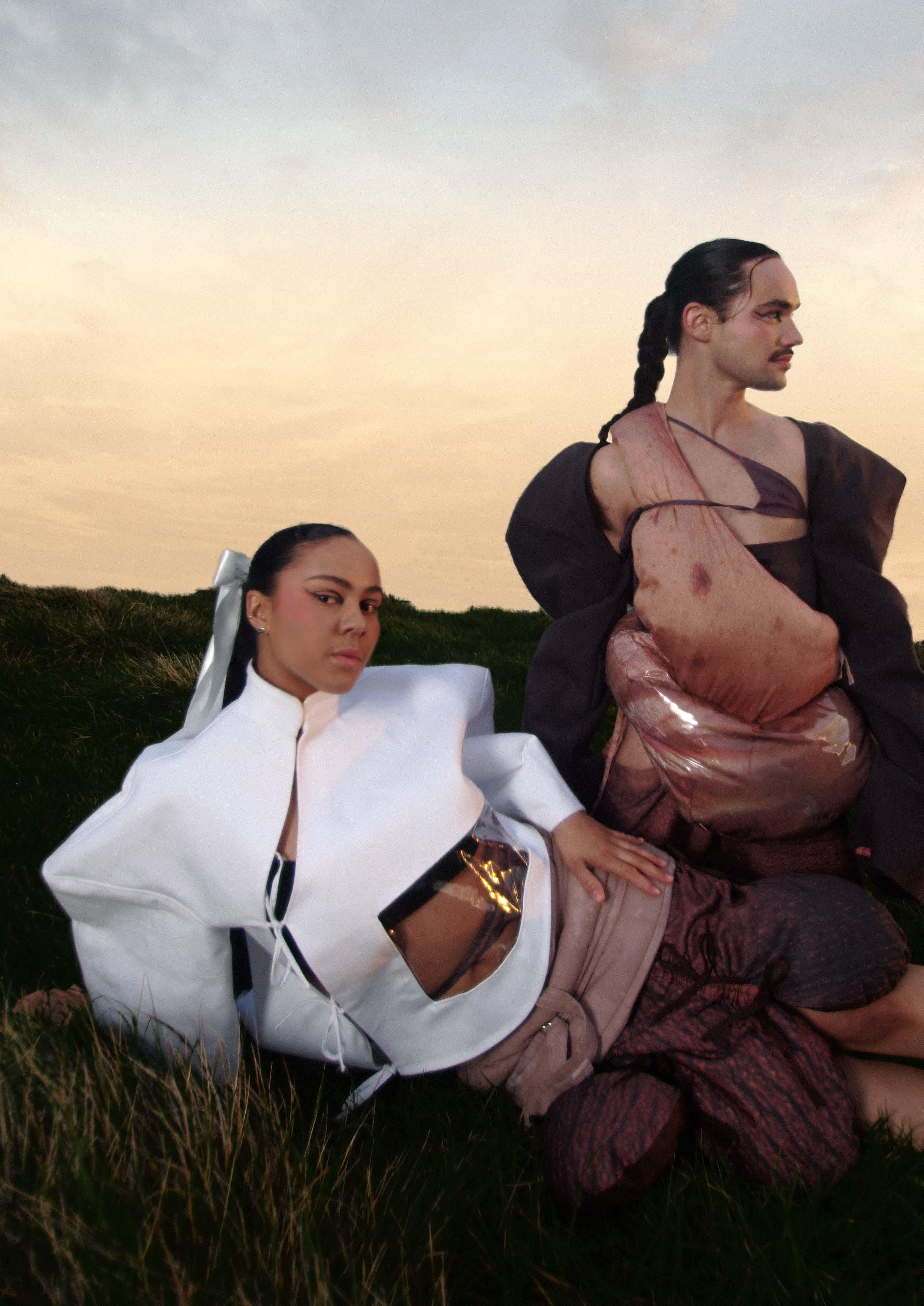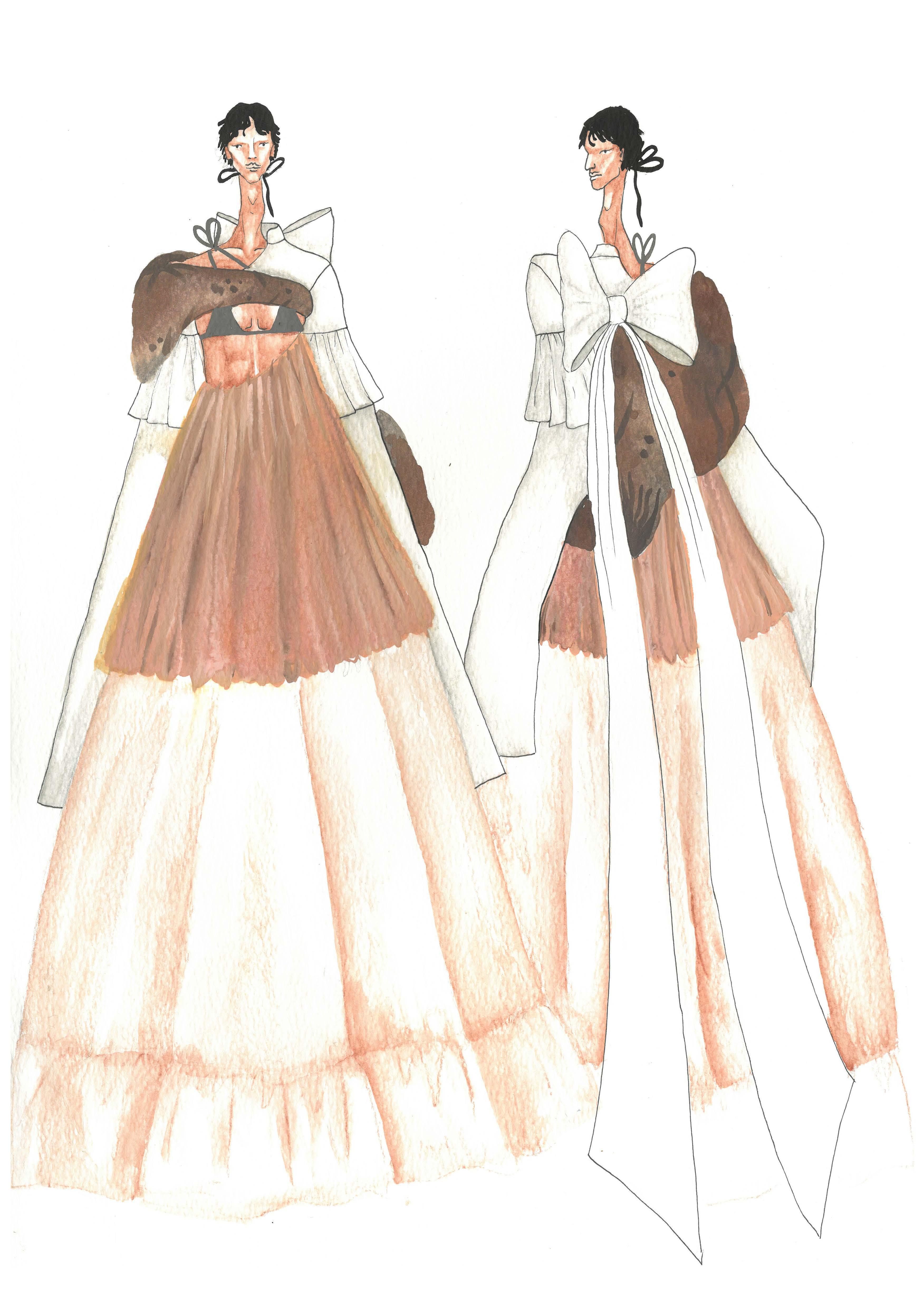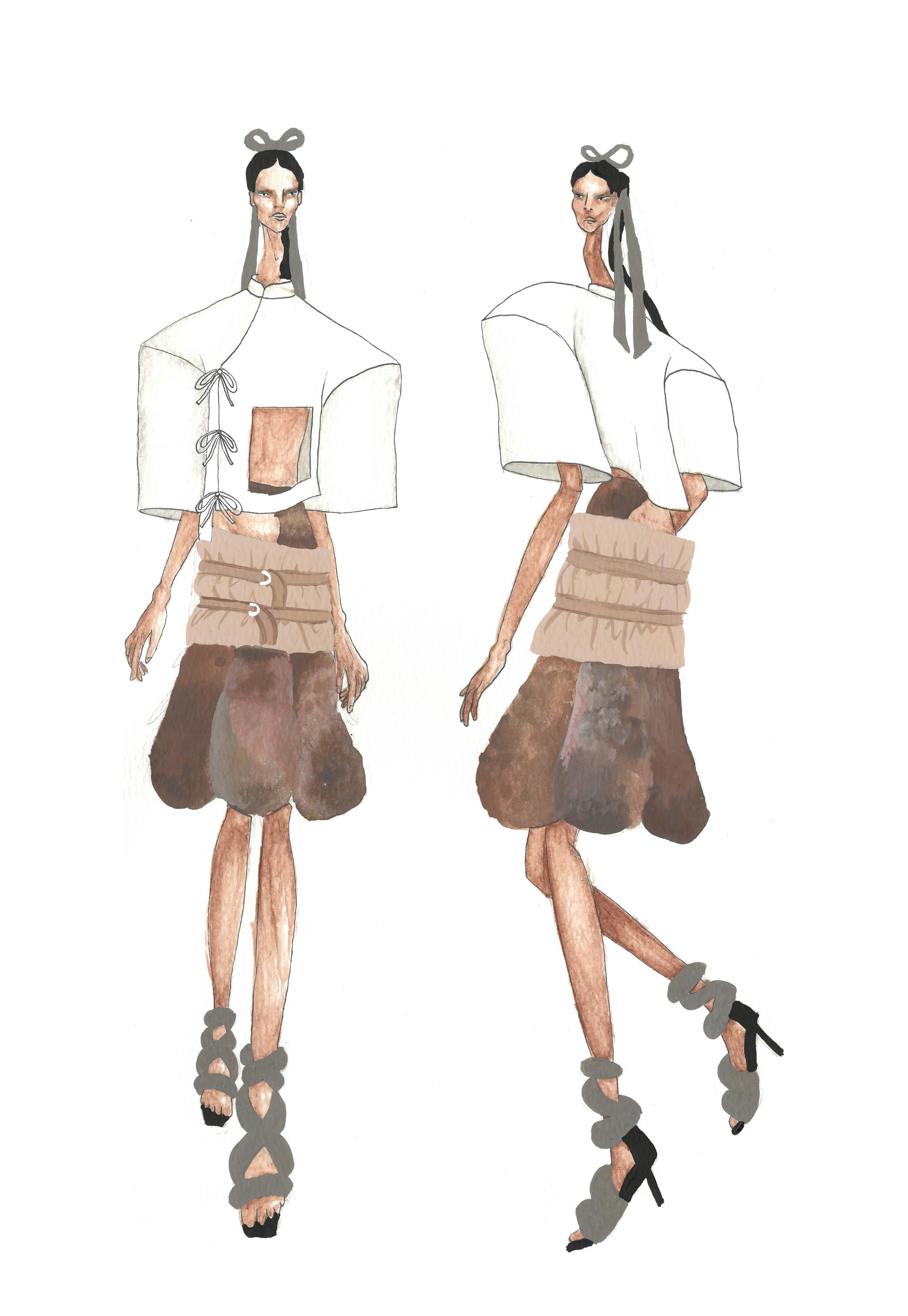 This collection aims to celebrate the different textures, colours and shapes of skin in an imagined near future world. The human body will not only be highlighted and revealed, but disfigured and caricatured through the use of silhouette and layering. The fabric will explore skin textures through visual photographic prints of different body parts, and tactile fabrication. The emphasis of natural colours and the natural body will be contrasted with the idea of transhumanism and how biology will merge with the artificial. Will human skin possibly evolve to become part plastic to prevent aging? Or will bodies be appreciated as a temporary part of life?