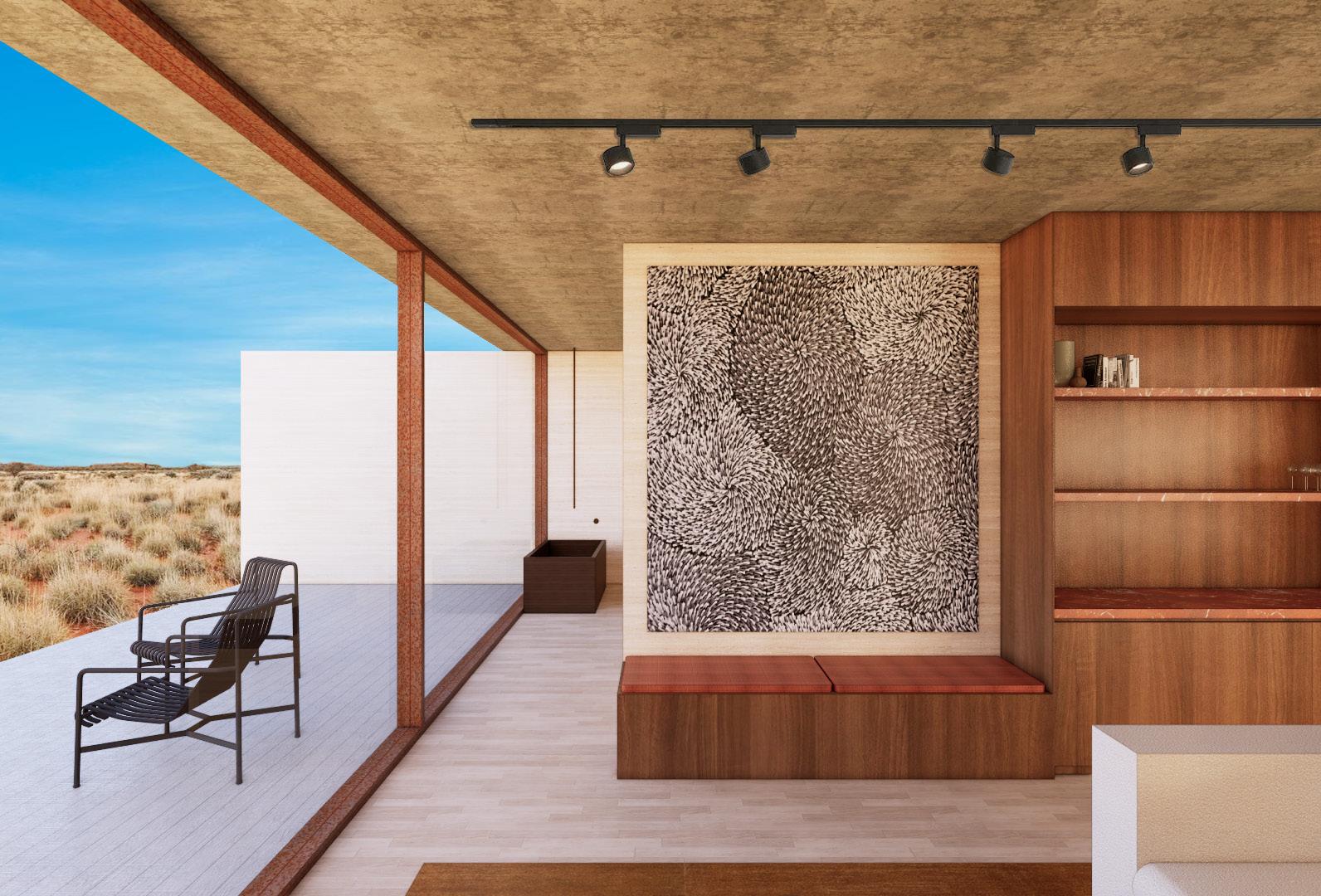 The W Hotel wish to expand their empire of luxury hotels and open their next contemporary build in the heart of Central Australia. With the desire to draw from the sacred land on which it will reside, the W Hotel is looking to have a minimum of 8 suites with an accompanying lobby, restaurant and bar. The restaurant is to fit the aesthetic of modern Australian cuisine while cohesively working back to the colour palette of the external land. It is important that local designers, artists and brands are used where possible and that acknowledgement of the traditional custodians is made.