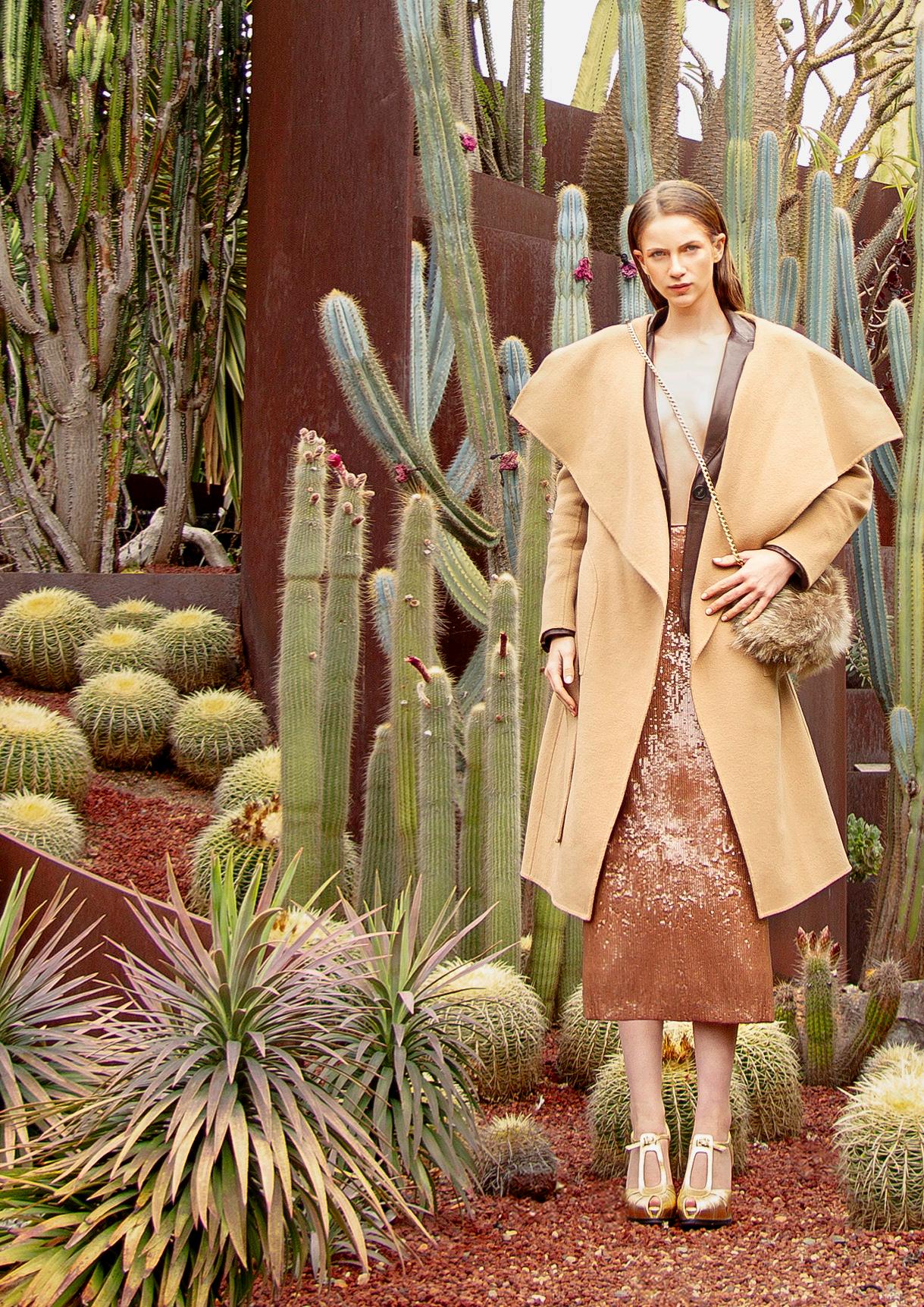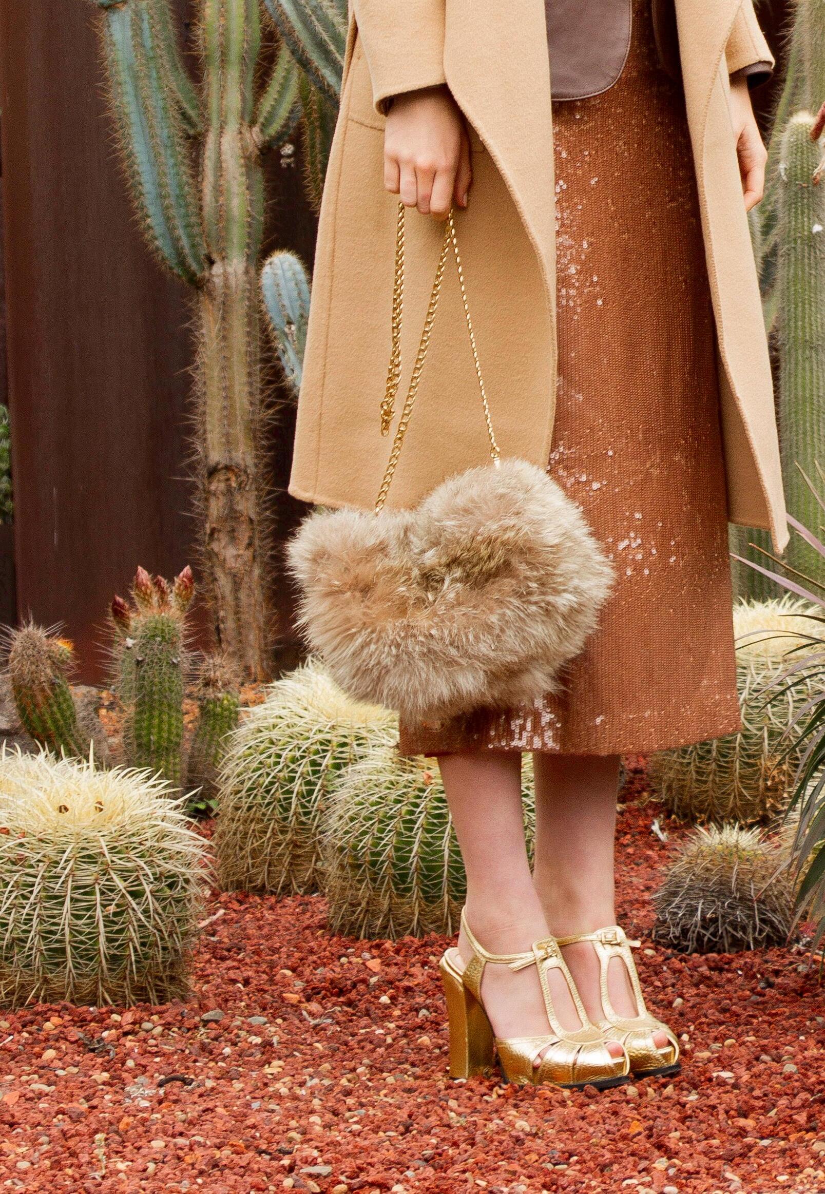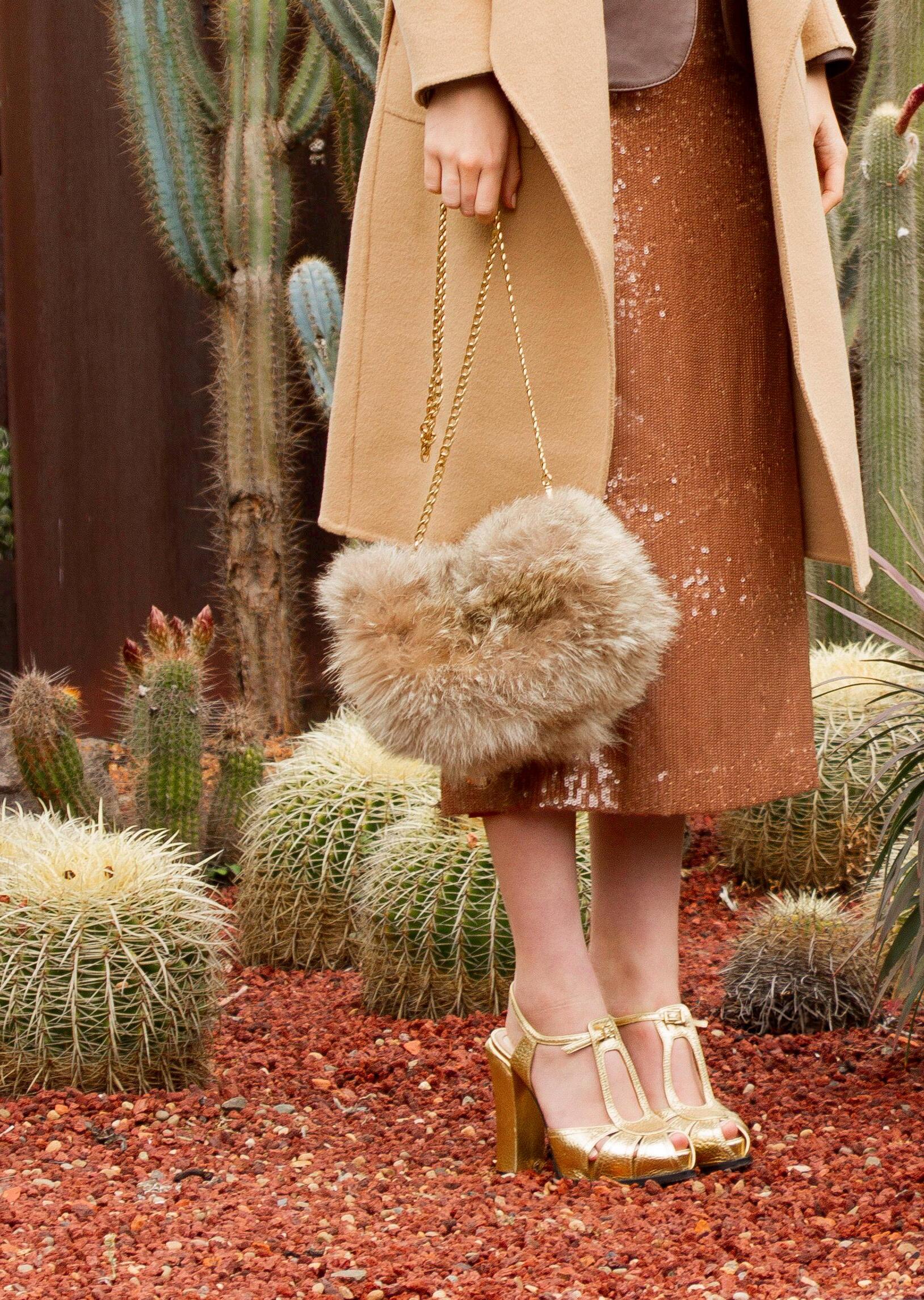 Above: Unreal Fur Saint Tropz Long-Sleeve Jacket. Opposite: Frey Sculptural Table.
