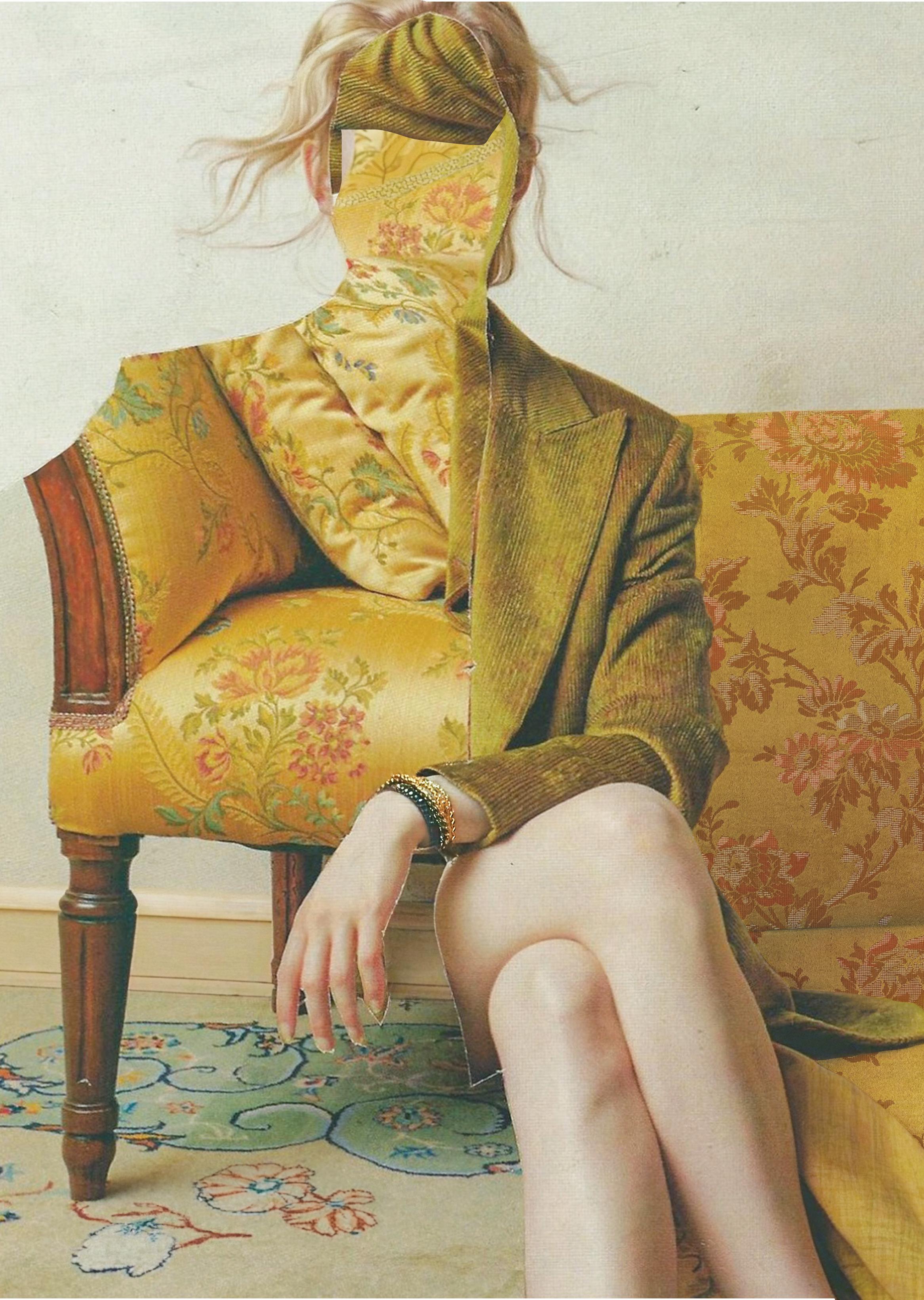 Above and Opposite: Collages Produced by Niki Sade Kebriti. Melding Interiors and Fashion, the Outdoors and Home Decor.