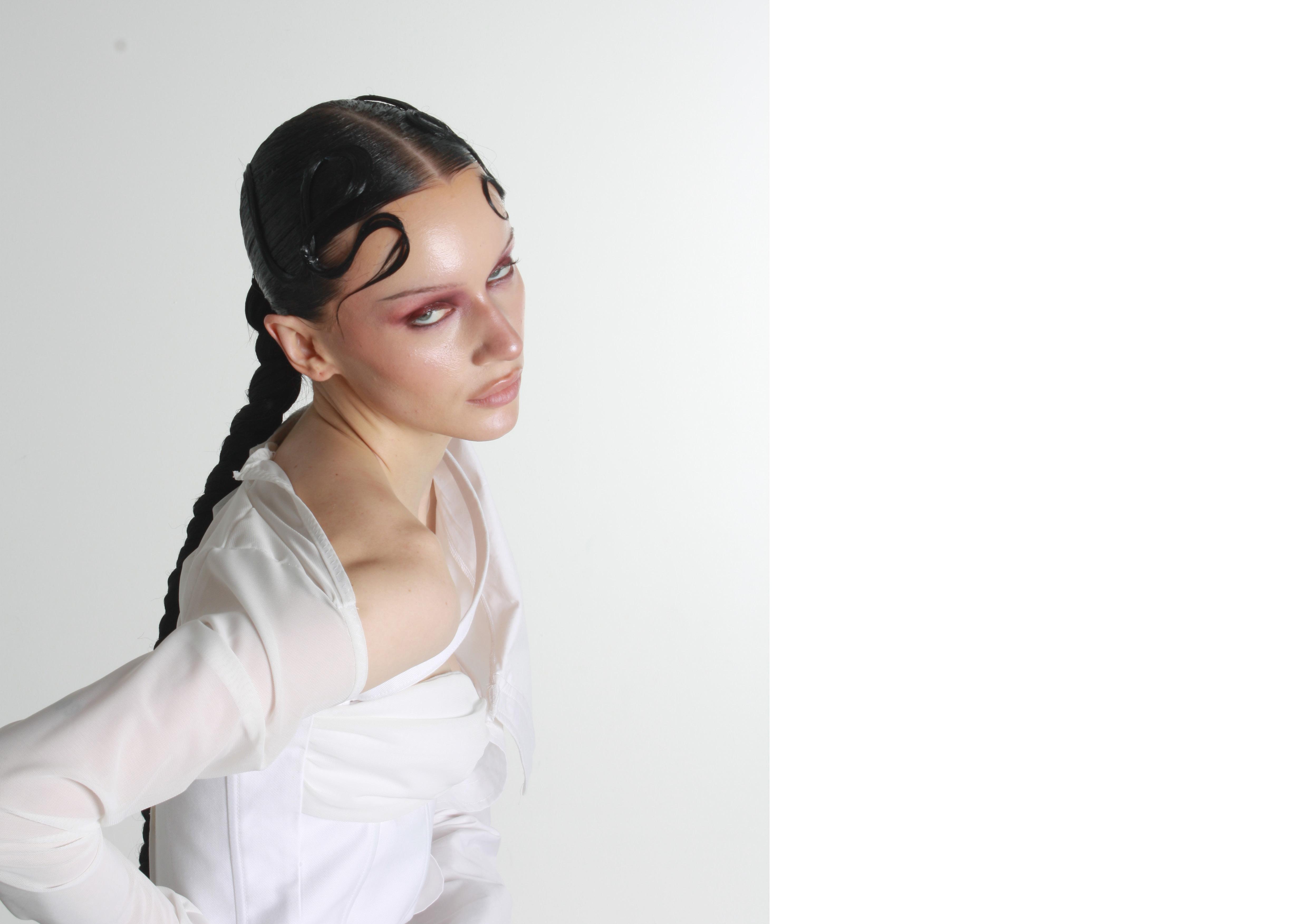 ‘Under worn out’, a trans-seasonal capsule collection, delves into the finer details of historic garments and how they can be carried on through a rejuvenated and progressive perspective. What were once hidden garments, are translated into a modernised and subversive collection in an attempt to reappropriate a corset for example, which is a traditionally oppressive garment. This collection consistently employs contrast and asymmetry, more specifically the juxta position between hard and soft and how they can unite seamlessly into singular garments. The refreshing use of white is harmonious through each piece and creates space for flex ibility for the wearer. A collection that truly celebrates and redefines the ways undergar ments are worn and represented in society.