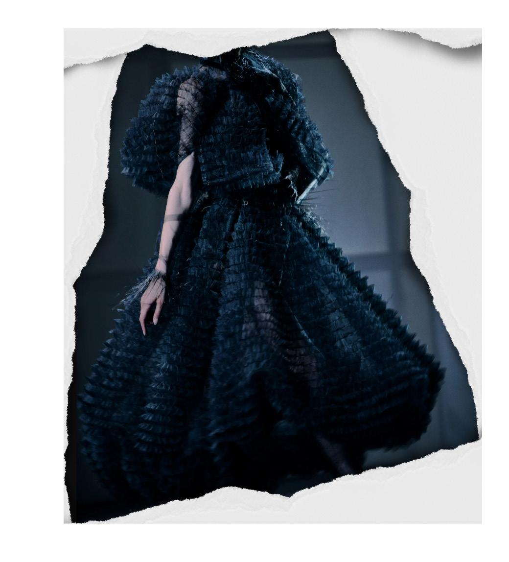 LOVE IS THE CENTRAL THEME IN ALL OF BAZ LUHRMANN’S FILMS, FOCUSING ON THE REVERANCE AND ROMANCE OF LIFE. LUHRMANN’S FILMOGRPAHY, IN PARTNERSHIP WITH HIS WIFE CATHERINE MARTIN’S COSTUMING, SERVES AS THE BROAD INFLUENCE ON THIS COLLECTION, WITH THE BIGGEST INFLUENCE COMING FROM HIS 2001 FILM MOULIN ROUGE. THE FILM’S CENTREPIECE IS THAT OF THE RELATIONSHIP BETWEEN EWAN MCGREGOR’S CHRISTIAN AND NICOLE KIDMAN’S SATINE, DEPICTING THE WHIRLWIND PASSIONATE ROMANCE THAT THEY DEVELOP AT THE BACKDROP OF THE MOULIN ROUGE. SATINE IS ASSOCIATED WITH RED TONES THROUGHOUT THE FILM, AND CHRISTIAN WITH BLUE, WHICH TURNS EVERY SCENE WITH THEM TOGETHER INTO A THREEDIMENSIONAL TECHNICOLOUR FANTASY. MUCH OF THE FILM’S AESTHETIC TAKES PIECES FROM CABARET, BURLESQUE, AND VAUDEVILLE, WHICH I USED AS AESTHETIC AND SILHOUETTE REFERENCES FOR THIS COLLECTION. THE VISUAL FOCUS OF THIS COLLECTION IS THE STRONG RED AND BLUE CONTRAST, WITH TEXTURE UPON TEXTURE CLASHED TOGETHER TO REFLECT THE EXCESSIVE VISUAL STIMULI OF LUHRMANN’S FILM.