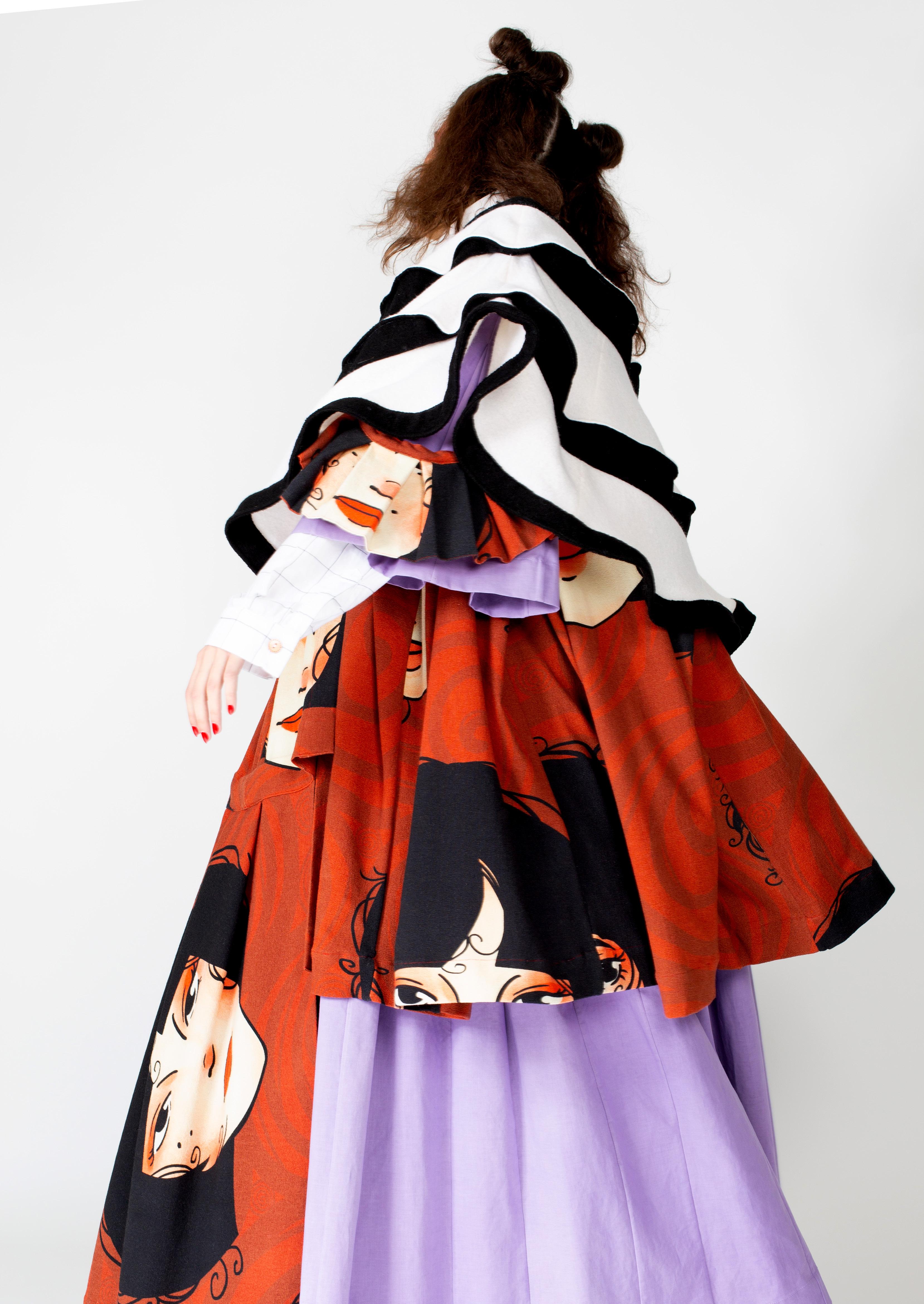 This collection, created in collaboration with the Australian Wool Education Trust, consists of twelve garments made from a series of wool and cotton blends to create a series of sculpturally ambitious and custom printed garments.