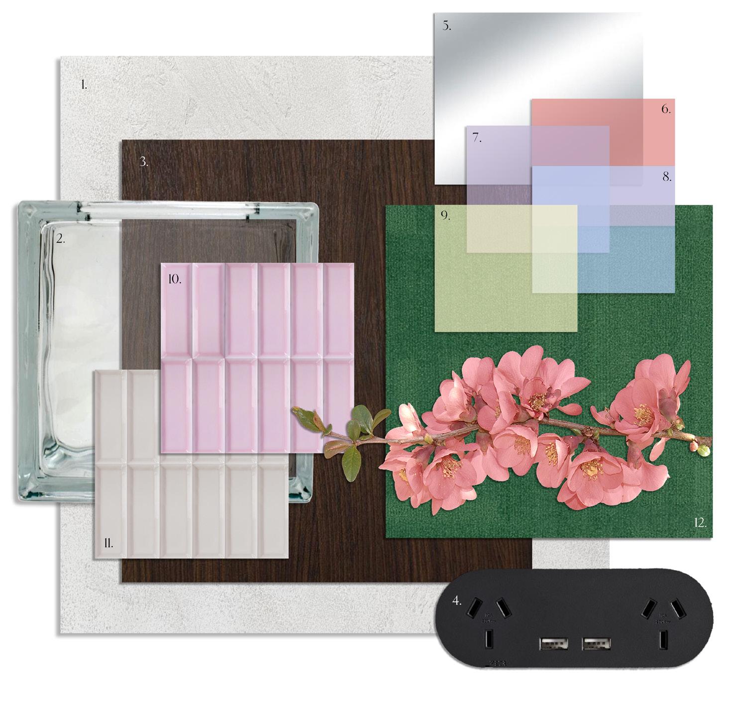 - HEADSPACE PSYCHOLOGYOVERALL MATERIALS 1. Polished Concrete 2. Glass Blocks 3. Engineered Timber 4. Zetr Double Outlet 5. Aluminium Metallic 6. PERSPEX® Frost Blush Pink 7. PERSPEX® Sweet Pastel 8. PERSPEX® Candy Floss Blues 9. PERSPEX® Lemon Bon Bon 10. European Alchemist Pastel Tiles (Primrose Bevel) 11. European Alchemist Pastel Tiles (Silk Bevel) 12. Carpet Tiles