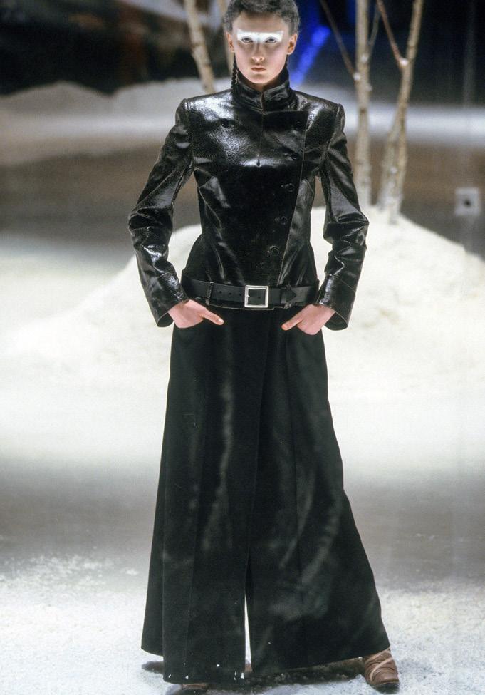 Regarding collection drops, showcases of runways and events to ad vertise each new release. Regarding invitations for Sanctuary For The Outcast, a red card with white embossed writing will be de livered to each guest, giving dates, details, and what to expect regarding the show. Invitations will be guided toward impactful women in fashion, social media, and artists within the music and act ing industry. The show will be promptly based around minimalistic colours, white and black with bold shades of dark red and a die sel blue correlating with the same scheme of the collection. The runway will be in the middle of the room. Small 3D church build ings will surround the runway, painted grey and white with black graffiti spray painted onto the architecture. As soon as the runway finishes, the collection will be dropped online and in person, and the in store collection will be released in the brand’s boutique. The after party will let guests purchase the first items to fall, including a Ready To Wear collection and the runway collection.