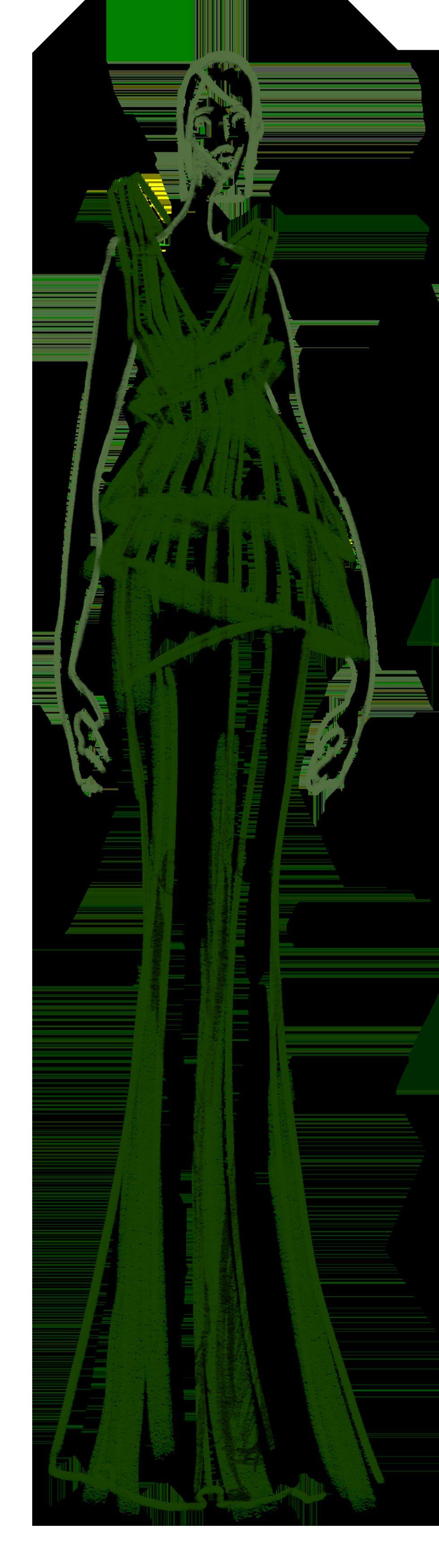The Algee look is a two-part ensemble featuring the ALGAE illusion dress and the TRUMPET jacket. The Algae maxi dress features the same A-line silhouette as the Monstera, with similar circle motif repeated through merino applique onto a power-mesh base. The Illusion dress is paired with the sculptural Trumpet jacket constructed in wool cashmere coating, featuring a large flounce, boned neckline in a trumpet shape and a circular opening at centre front.