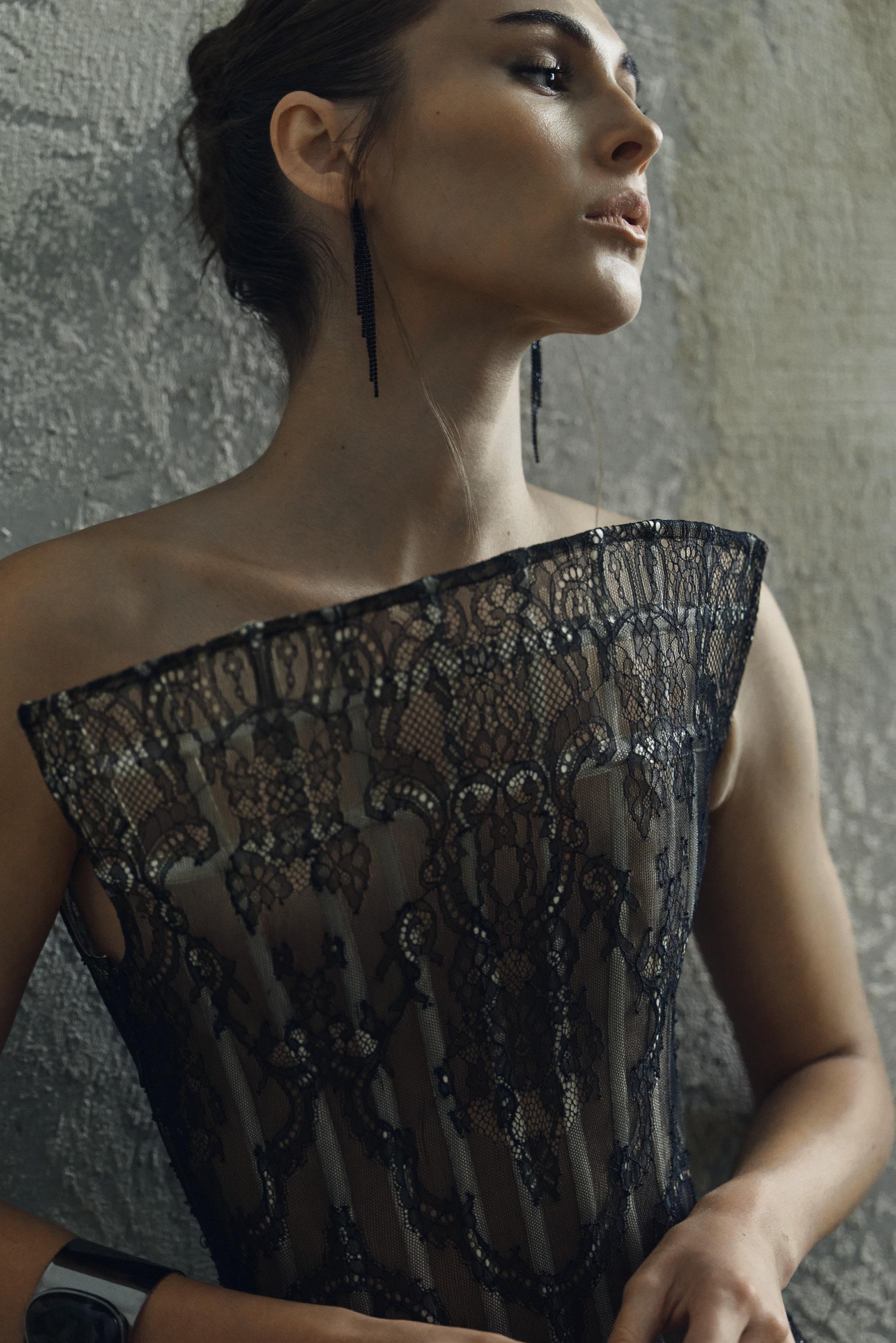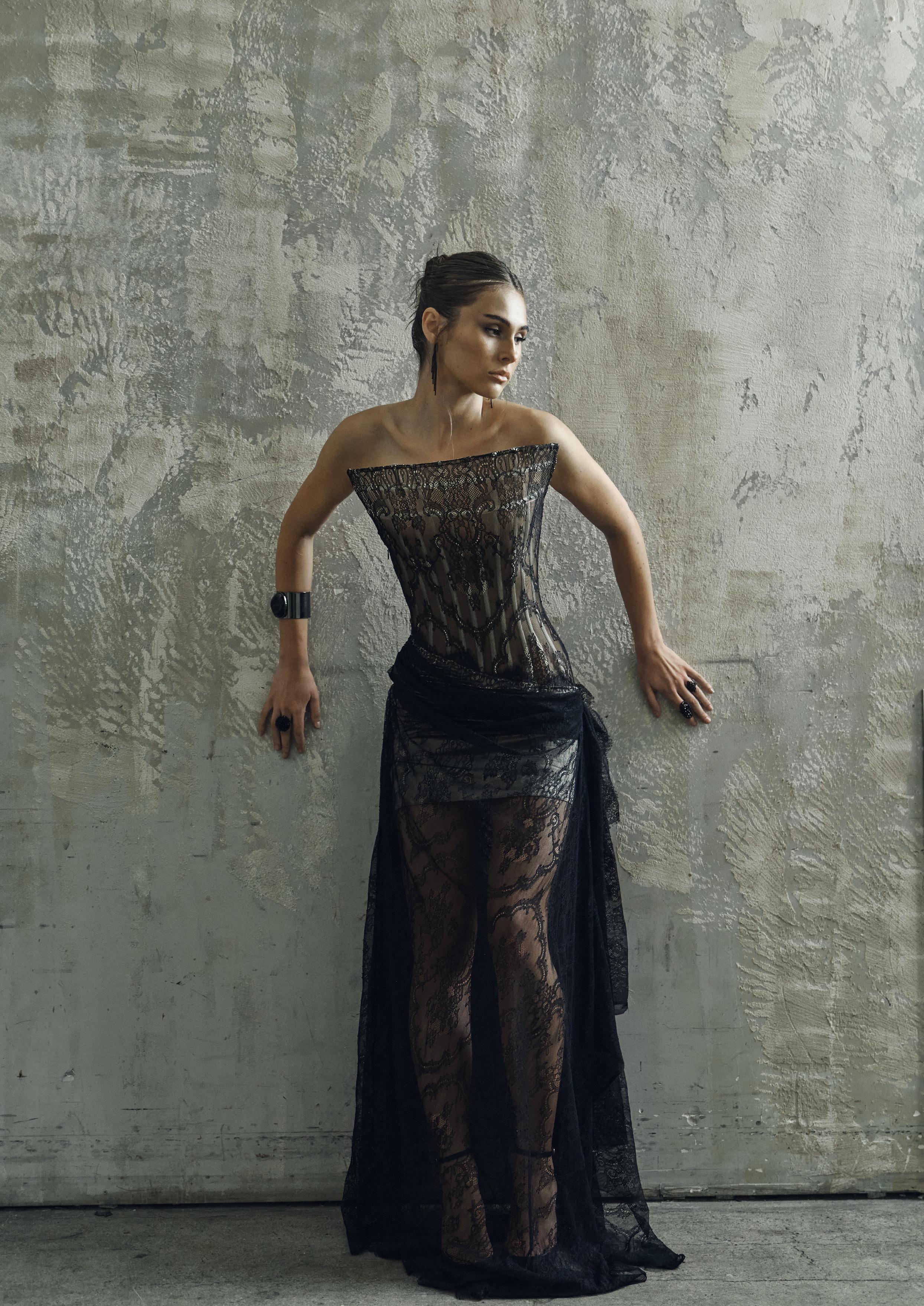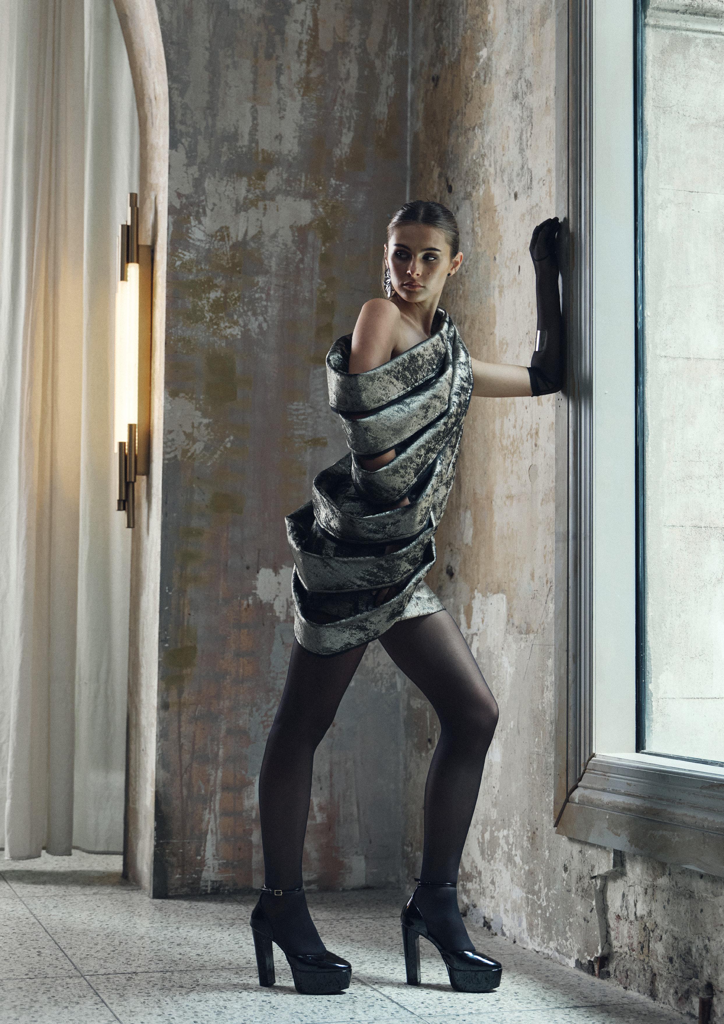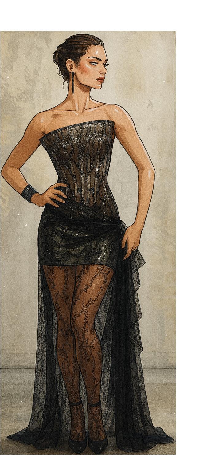 Designed for women who embody luxury, sophistication, and high fashion, the collection combines crushed metallic velvet, delicate lace, sheer veiling, and luminous textures to create depth, movement, and atmospheric richness. Each piece is crafted with precision to evoke confidence, allure, and emotional presence, elevating eveningwear into a refined expression of strength and elegance.