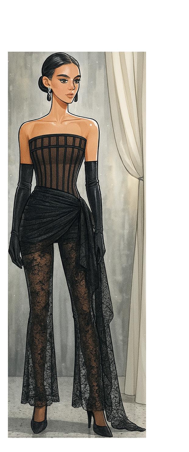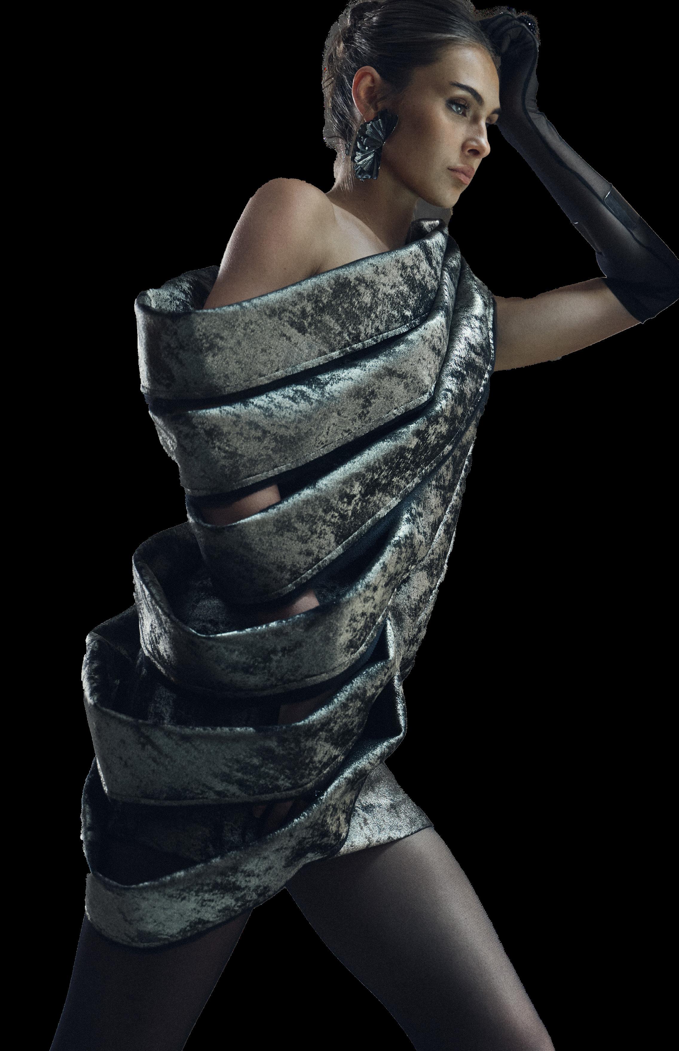 M I R A G E moves beyond traditional eveningwear, establishing a sculptural language that reflects both the strength of its construction and the confidence of its wearer. Each piece asserts a presence that is unmistakable, transforming every moment into an experience of modern luxury and elevated identity.