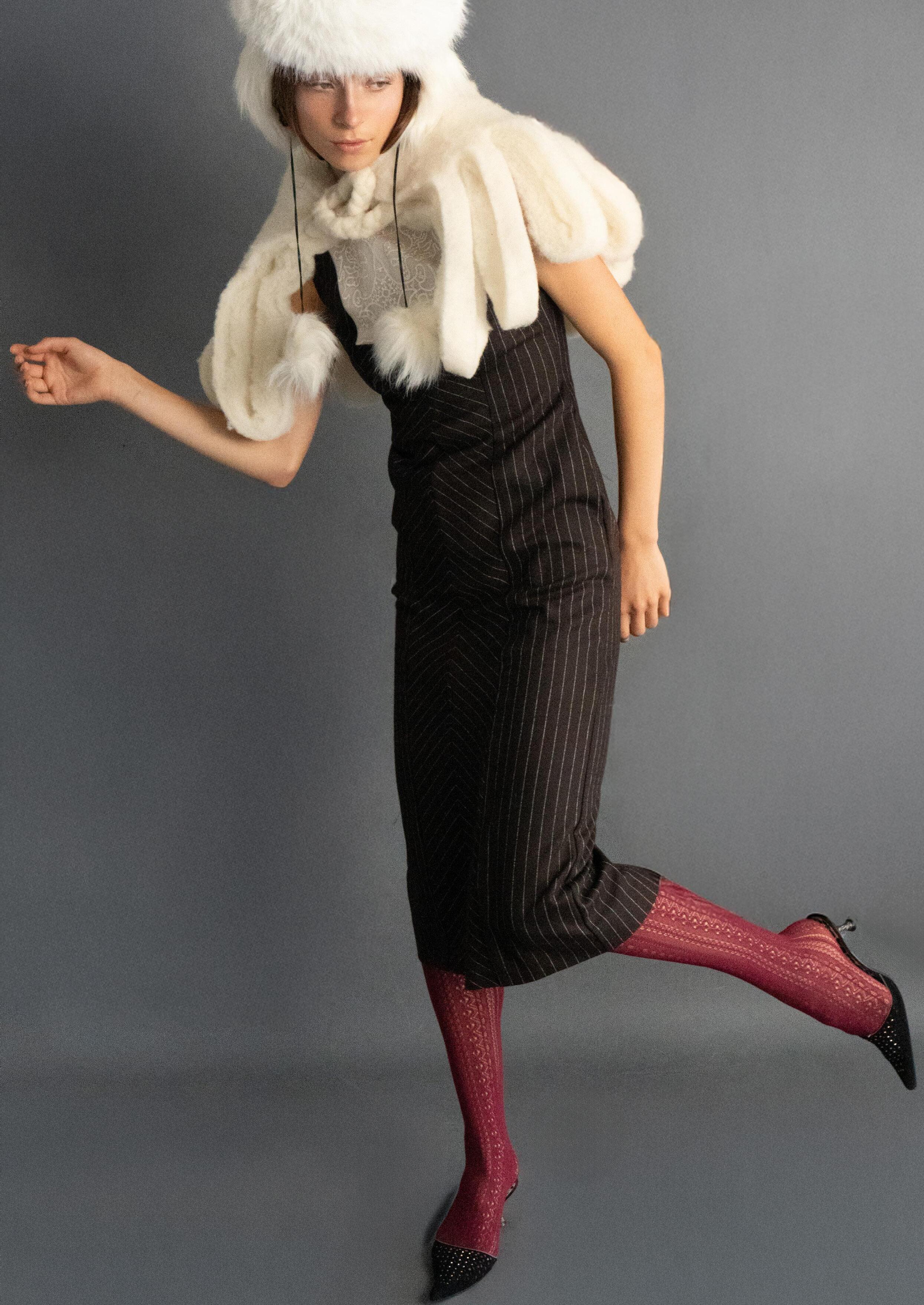 The main focus is on silhouettes and three dimensional textures which are informed by nature’s gifts as natural fibres have been used for many centuries and are more reliable during the test of time. Wool is also being incorporated in this collection and is wrinkle resistant which keeps the silhouettes in pristine condition during and after use. The sleeves, pompoms and shall are made with super puff wool. Wool has temperature regulating properties which will keep the wearer warm in the winter while comforting to the touch.