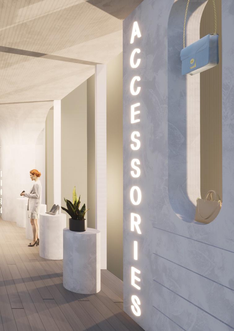 The space must include retail displays, checkout area, change rooms, lounge, runway/event space, bar/ kitchenette.