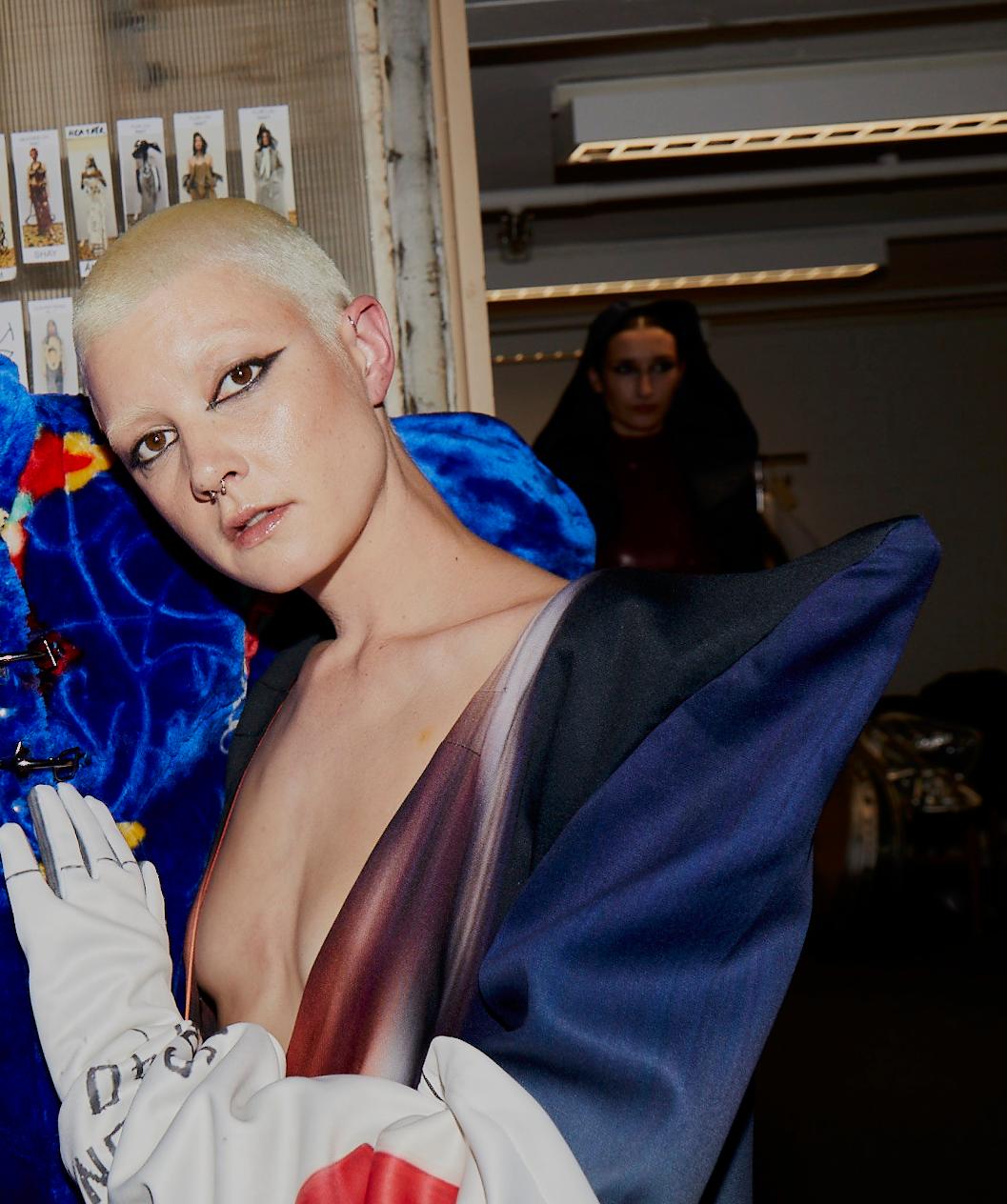 She has managed to find her aesthetic philosophy that translates local stories, deep-rooted cultural influences, and rituals into design craftsmanship. Mona embraces exploration by touching into Avant-Garde style that manages to defy cliché and, simultaneously, fuels the eagerness to discover and rethink the unknown. Frumpish clothing, bizarre shoulders and clashing archetypes are few of her many design characteristics. As a designer, she wants to normalise wearing out-of-the-ordinary garments for all sizes, genders and cultures. The ideas of what she creates is never limited to what the public has already seen or used to seeing.