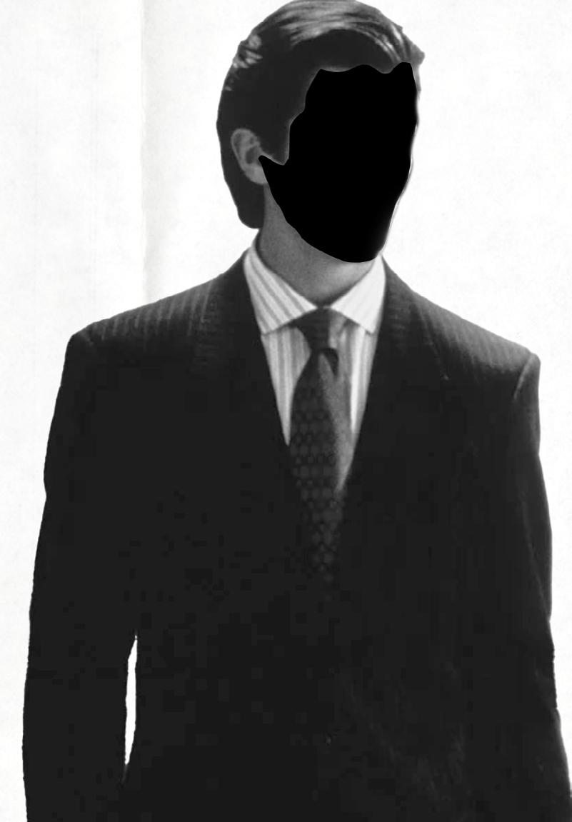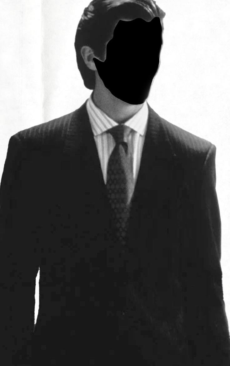 Patrick Bateman Face distorted and printed onto Oliver fabric from Digital Fabrics. 127 GSM lightweight polyester spandex blend.