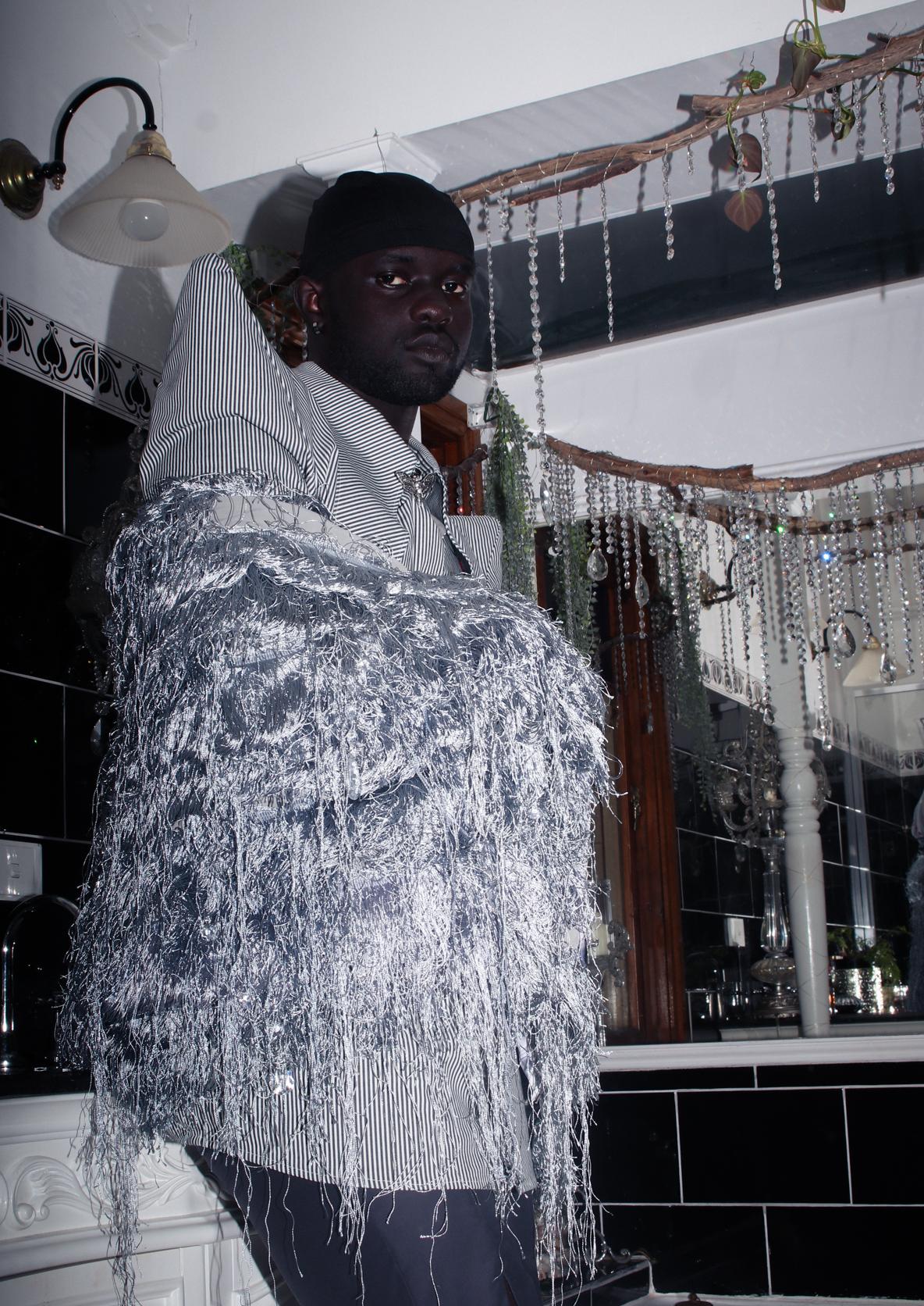 Tassel Cape Made out of 15m of tassels in silver/blue colour.