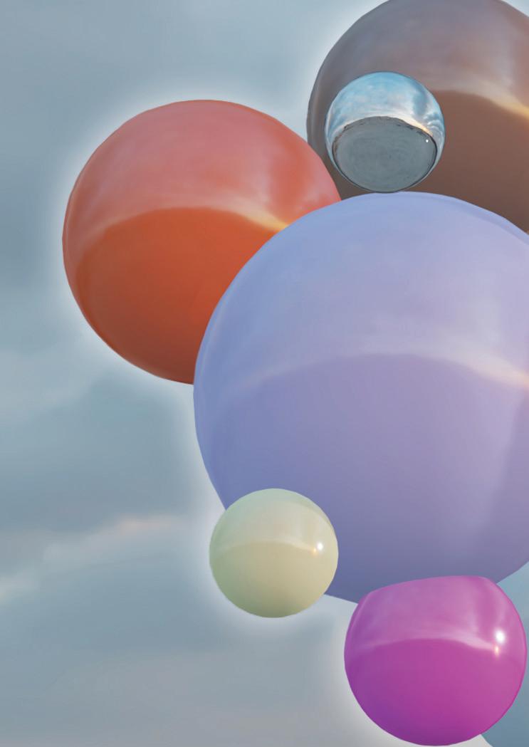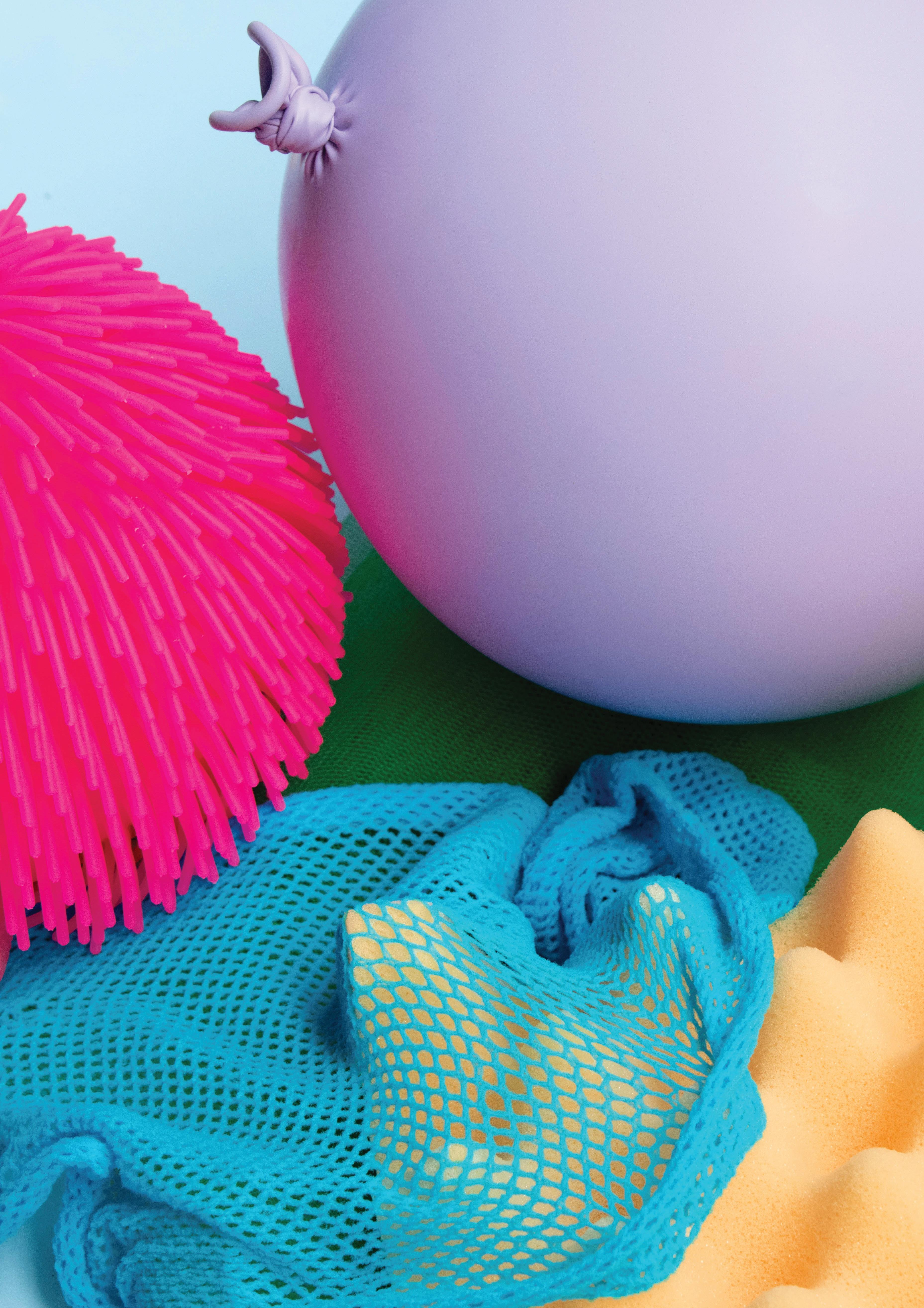 the natural and the digital. The future here is bright and playful, incorporating digital designs for wear in the avatar world, distorted prints, and bubbly shapes. Textures are soft, flowing and pillowy, shapes are bouncy and colours are bright, emanating joy.