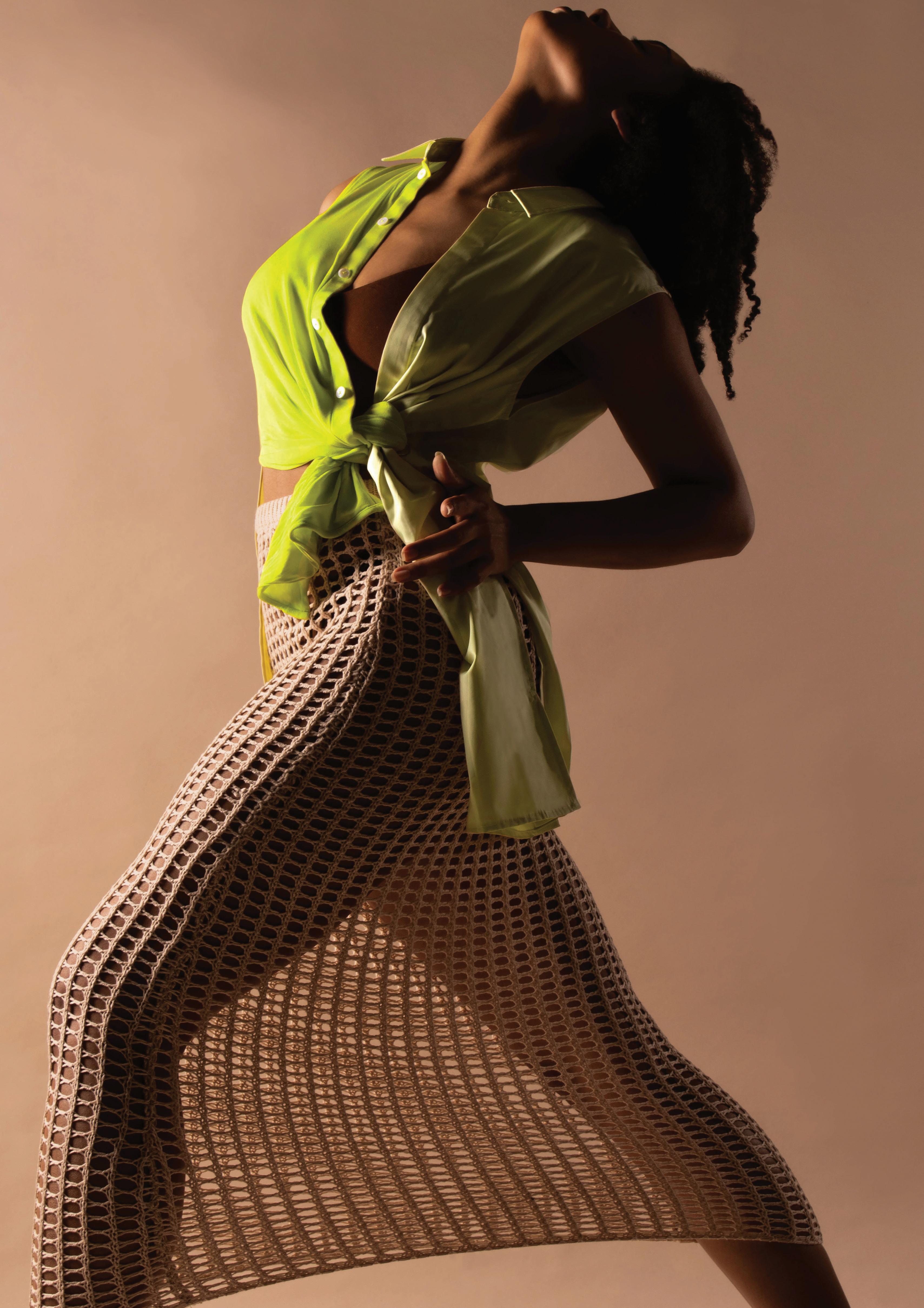 Terraform is the warm tones that make up the earth, the human body and the shock of the unnatural. This story features warm browns, beige and terracotta, clashing with acidic green, infiltrating the comfort of the natural. Exploring the rounded shapes and soft textures of the