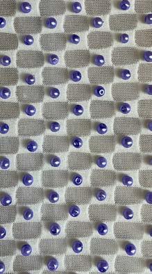 The tights are a nude illusion with beads continuing the radial motif of colour as well as resembling the atomic structure.