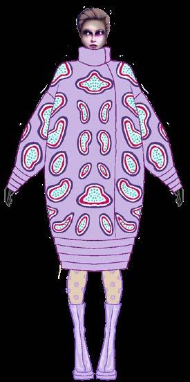 Hailing from Melbourne, Australia, Rose Holland has a background in traditional crafts such as hand knitting, crochet, and quilting. Working with her hands makes her feel connected to the generations of her female ancestors, to whom these skills were essential, but unappreciated. Her luxury streetwear designs are a fusion between handmade craft traditions and current and future fashion technological innovations – such as digital print, CAD and AI. She has a background in academics and philosophy and has a highly cerebral approach to her design practice. Her work is inspired by 20th century history, science fiction film and literature as well as feminism and intersectionality. A common theme seen within her work is the ethics of technology and human bodies.