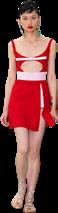 LOVE THE BOMB is a conceptual collection of luxury garments taking reference from science fiction films and literature of the 1960s combined with the myth that cockroaches can survive a nuclear apocalypse. The collection was inspired by the harsh juxtaposition between the optimism and anxiety that came with the development of nuclear technology, and the complicated legacy of the “Atomic Era”. The garments and imagery reflect a satirical perspective on how the existence of nuclear weaponry makes human beings inherently insignificant and powerless. LOVE THE BOMB uses one of a kind knit, crochet, craft, patternmaking and beading techniques to create unique fabrications reminiscent of patterns and structural details seen in the entomological world and atomic energy, juxtaposed with optimistic atomic era inspired colours and silhouettes.