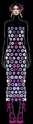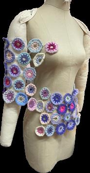 Body three was inspired by a mix of different insects as well as honeycomb. The chainmail style structure was inspired by Paco Rabanne’s 1960s metal creations, however I combined this with crochet for a colourful and organic look. The crochet elements also give the dress stretch allowing for a tight fit.