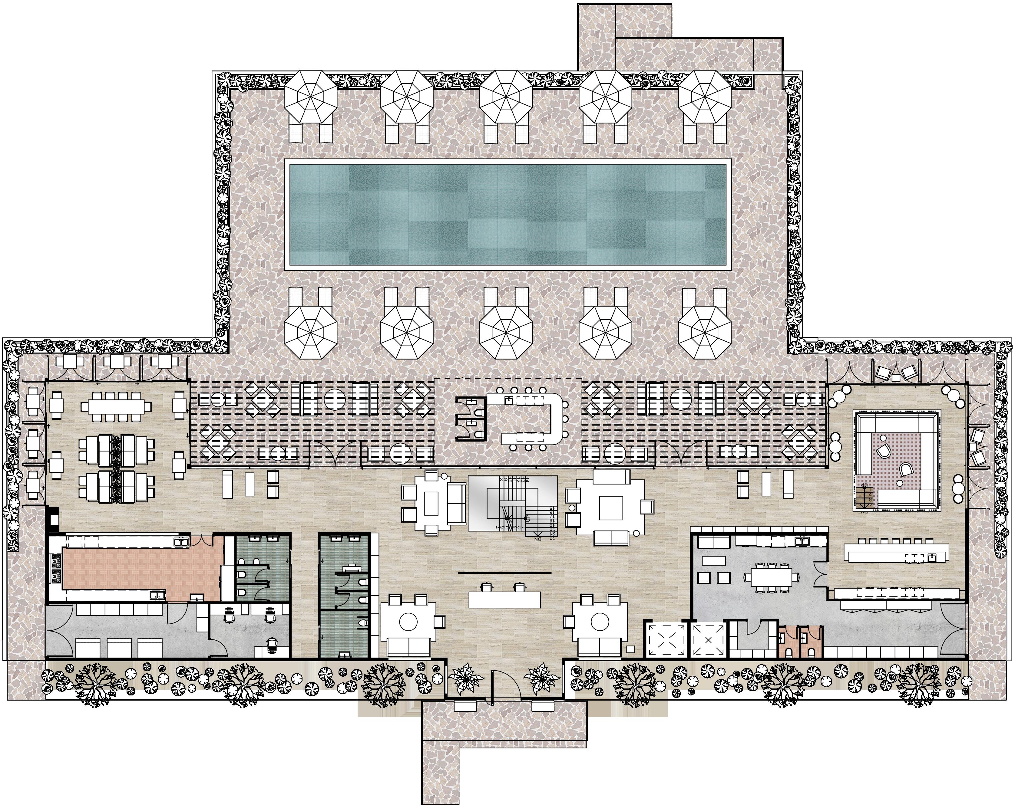 Being situated on world famous Palm Beach provides the perfect location to create the newest luxury coastal boutique hotel for Ace Hotel’s second Southern Hemisphere venue. Understanding Ace Hotel’s brand identity and values, together with Palm Beach’s demographic and energy are essential factors in successfully designing a luxurious boutique hotel. To embody an innovative and exciting space, the design will be focusing on an eclectic approach, layering of high-quality materials and textures, ambient lighting, a flexible and adaptive layout, biophilic qualities, designer mid-century modern furnishings and incorporating a nostalgic colour palette. In addition, applying sustainable practices, installing newest high-end technological systems and integrating quality finishings and joinery with superior crafted hardware fitted throughout the entire hotel.
