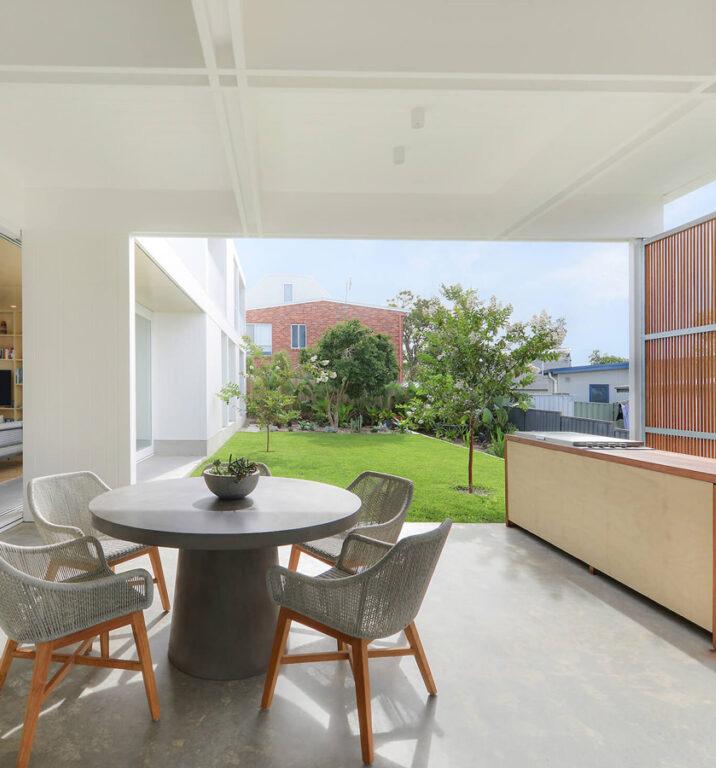There is a slight downward slope from west to east. Amenities in the area are diverse and extensive including; restaurants, cafes, pubs, parks, beaches, walking trails, golf courses and bed and breakfasts’. Sources of noise are from cars, street parking, pedestrians, golf course, beach and nearby surf life saving club. Building materiality includes brick for the building structure, concrete core, timber exterior panelling and glass railings on the first-floor balcony.