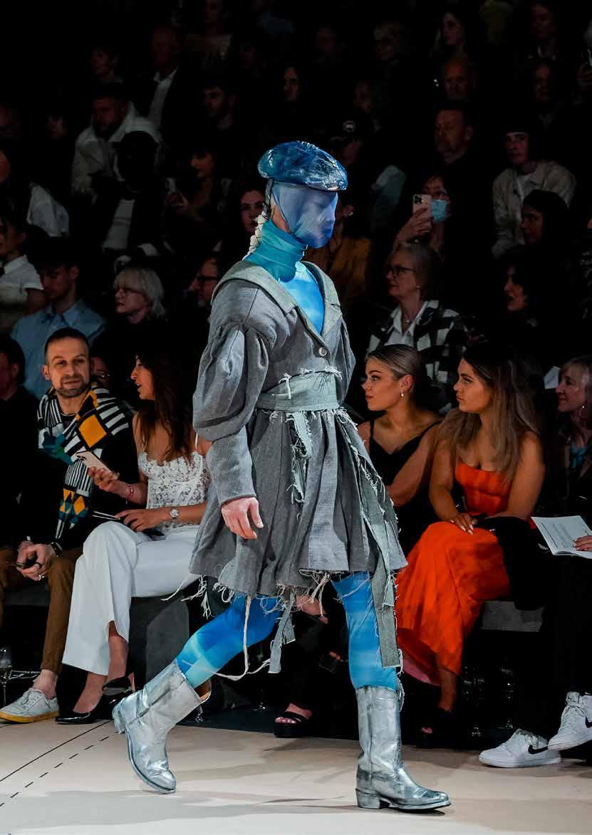 This later followed him to a Bachelor of Design (Fashion Design) at the Whitehouse Institute of Design Melbourne. During his studies he has had his exhibited in Melbourne Design Week in Calum Hurley’s exhibition HARD. Throughout his final year, he was recipient of the Australian Woolmark Grant to produce his graduate collection. He was also successful in having his designs featured in the Melbourne Fashion Week Student Runway in 2022. He has also been selected by Melbourne Fashion Hub to be in their pop-up store in Emporium for 2023