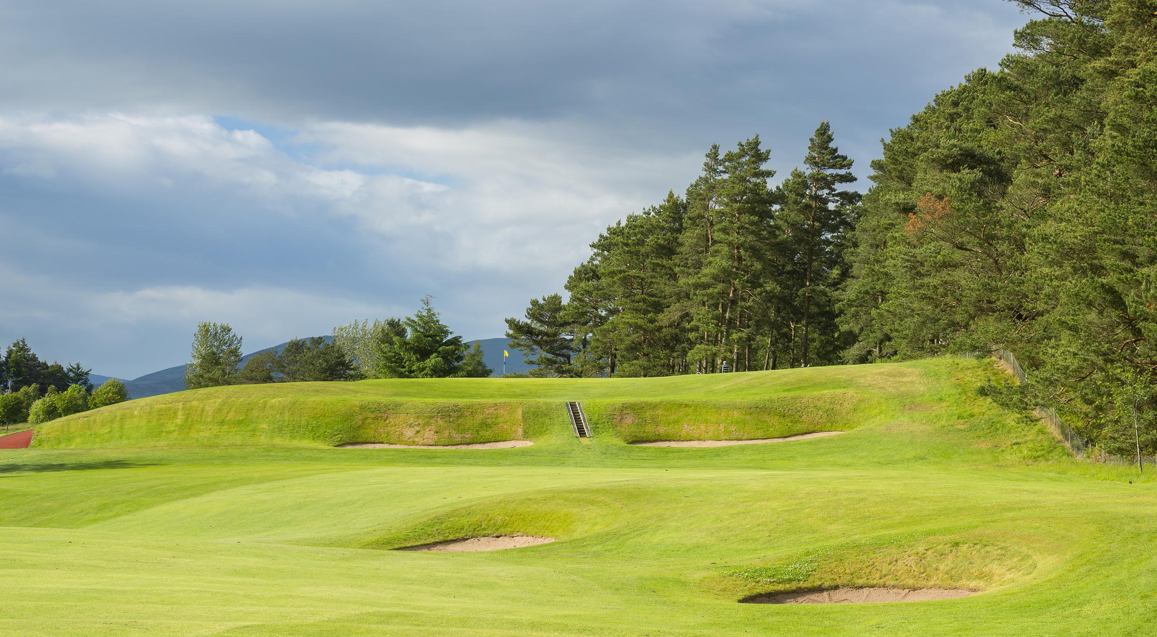 The first six holes of the course are laid out over flat parkland followed by six holes set in remote hilly woodland. The round is completed over undulating parkland with the course’s signature hole, the 9th – Murdie’s View – which is played to a backdrop of pine trees and the Cromdale Hills.