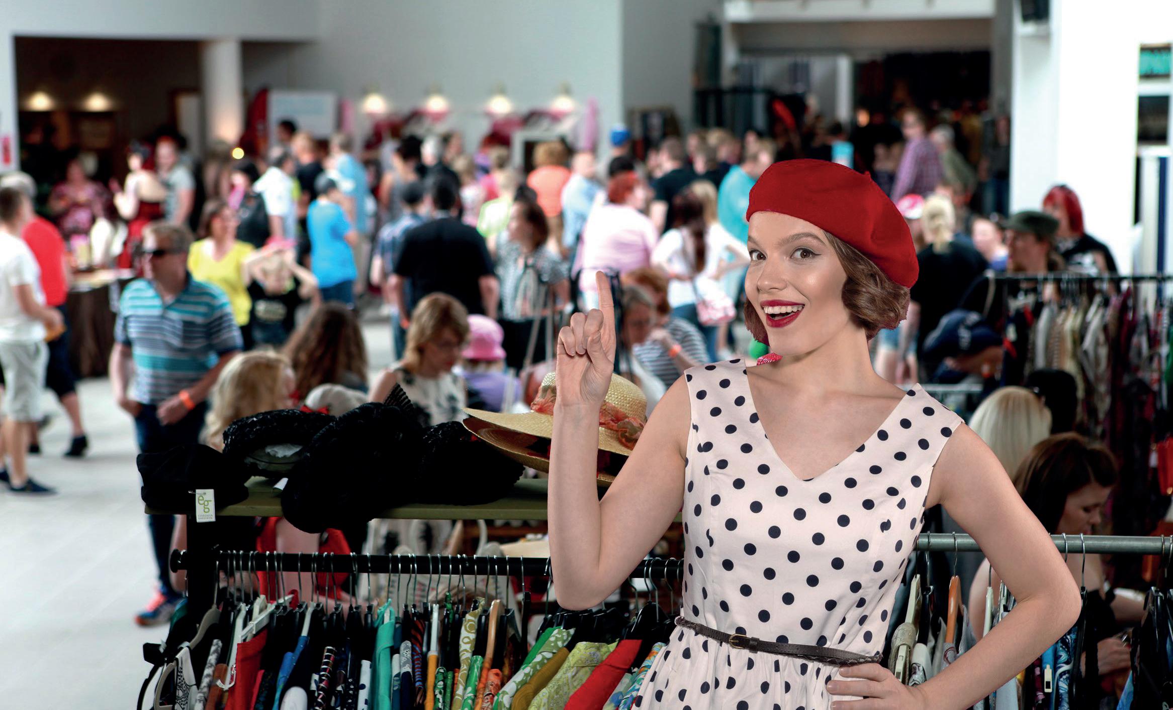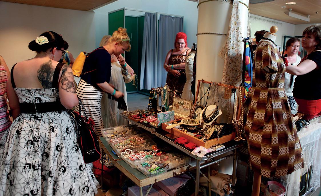 Kulttuurikeskus Poleenin aula ja pihanurmikko täyttyvät pienistä myyntiosastoista, joilla on tarjolla niin aitoja vintage-asuja ja oheistarvikkeita kuin edullisempia uustuotettuja retrovaatteita ja -asusteita. Tapahtuman ainutlaatuinen tunnelma houkuttelee kävijöitä kauempaakin kokemaan menneen ajan lumoa.