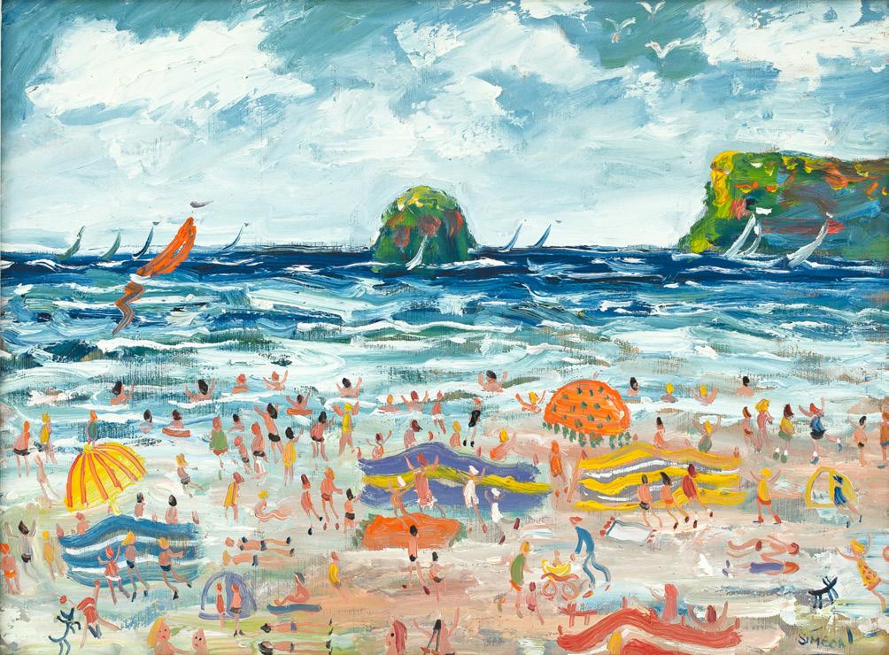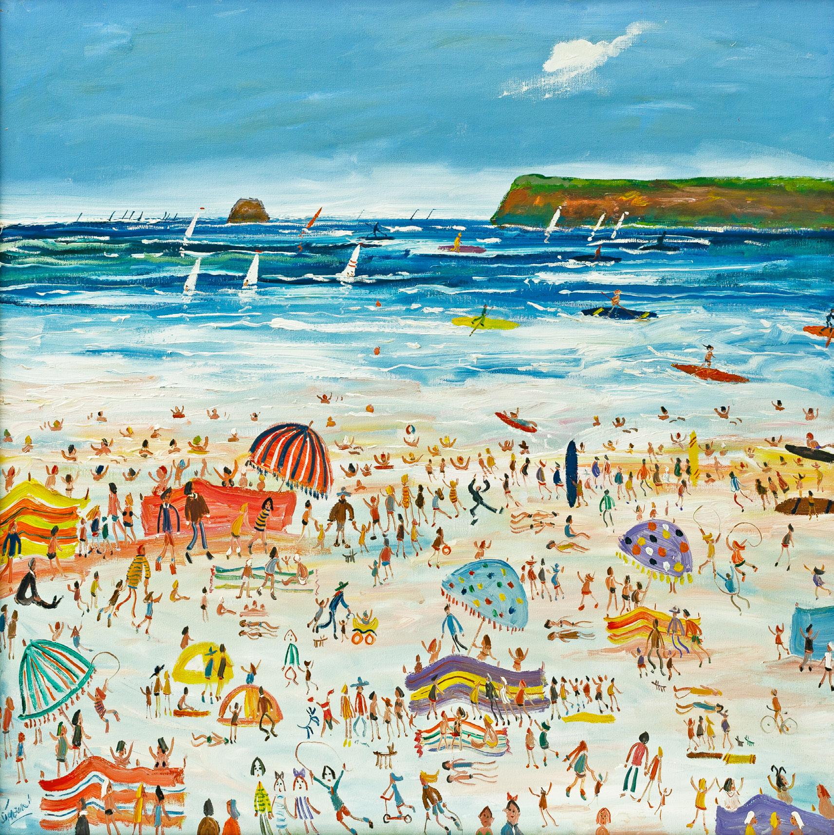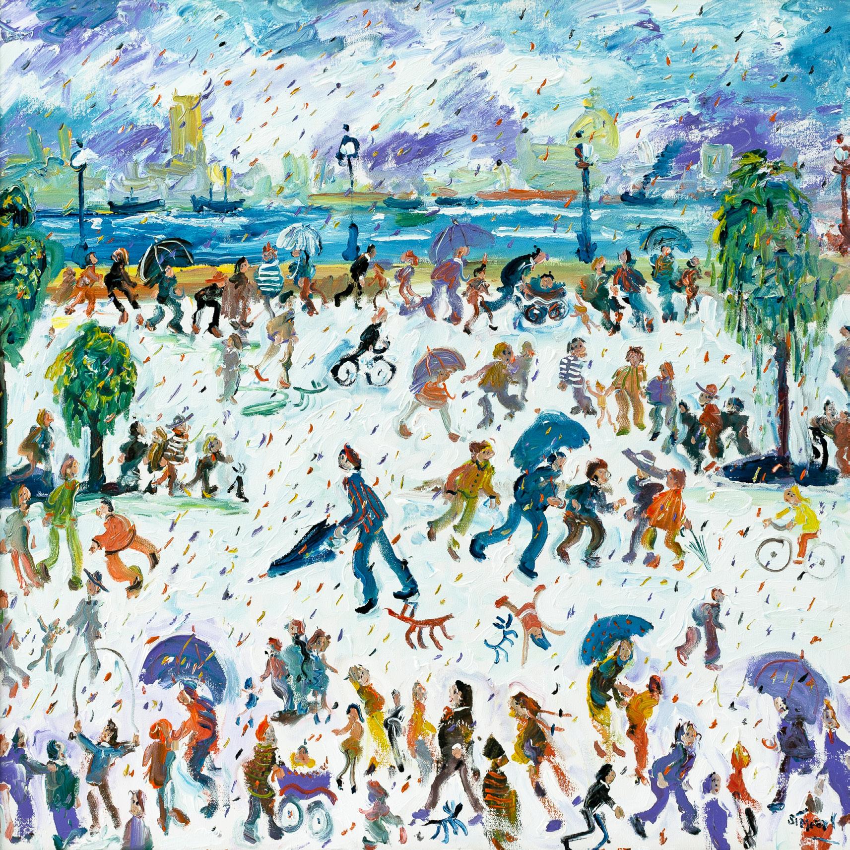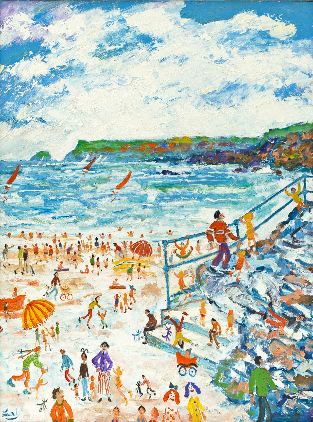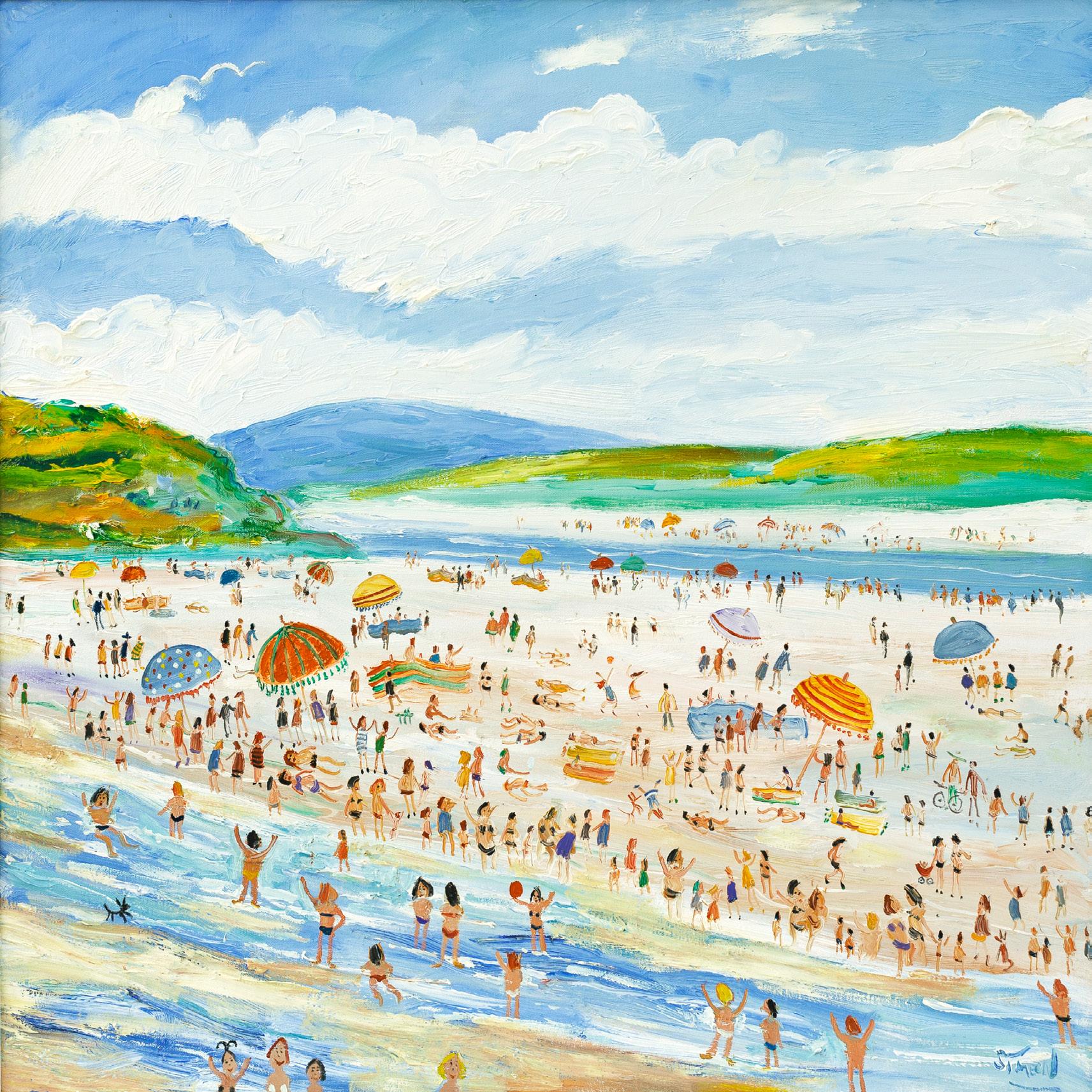 Over his 40 year career, Simeon Stafford has established himself as one of the UKs most recognised artists, known for his high-energy paintings of unique places and their bustling communities. As a child was introduced to celebrated painter L.S. Lowry who encouraged him to study art. Lowry’s influence is evident in Stafford’s simple figures, densely populated scenes, and uplifting palette of rainbow colours. This new collection is largely inspired by the beaches and harbours of the North Cornwall coast, including a show defining large-scale work depicting a fictional funfair on Polzeath beach.