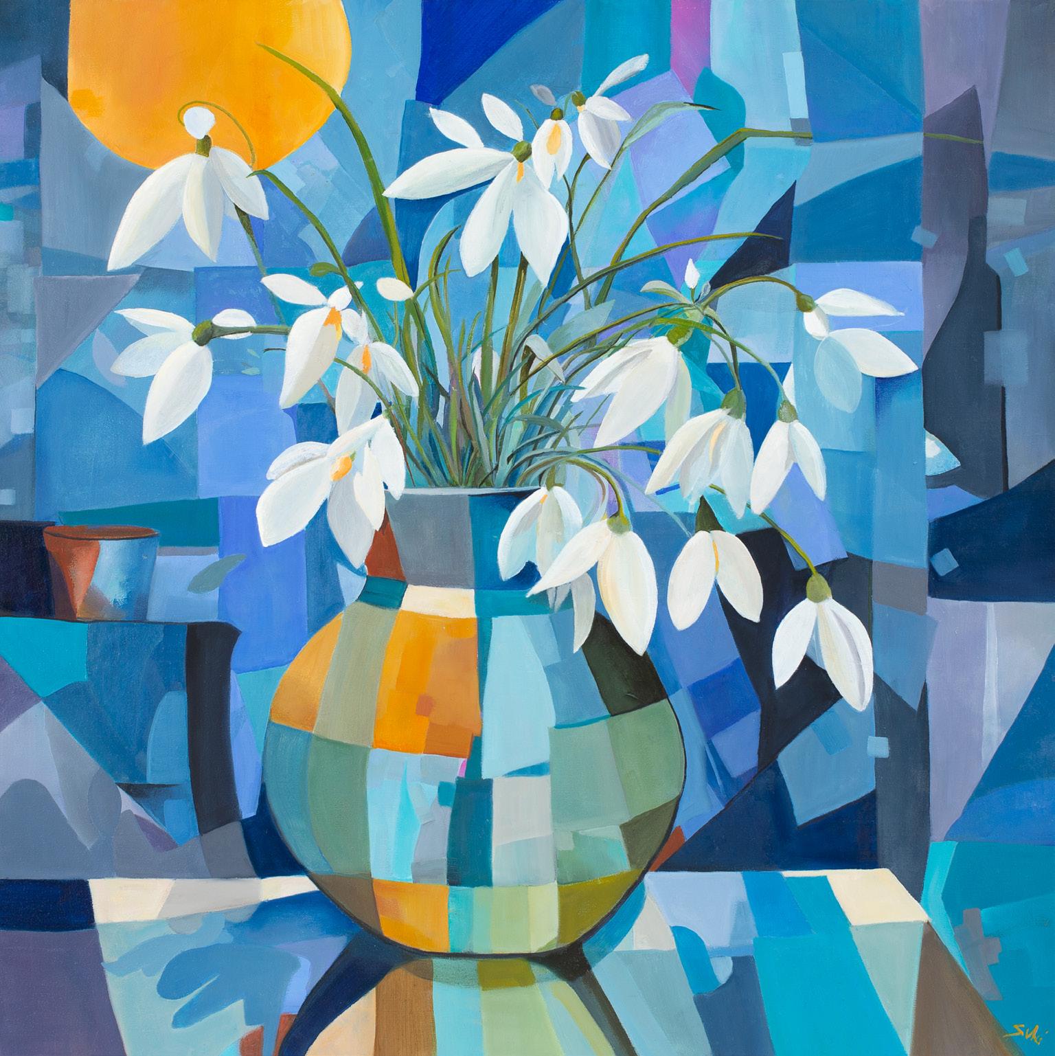 ‘Snow Drops in Blue Vase’