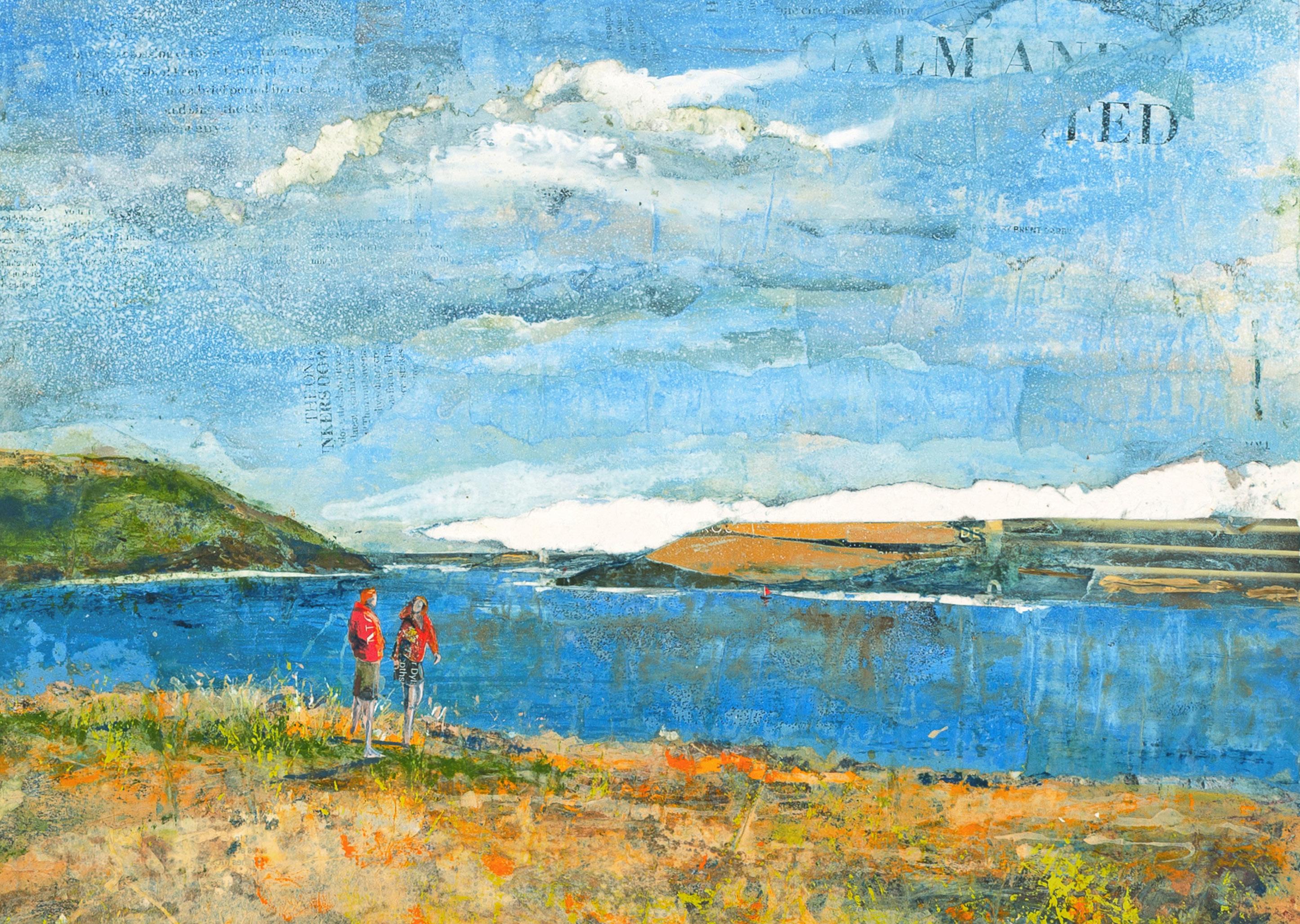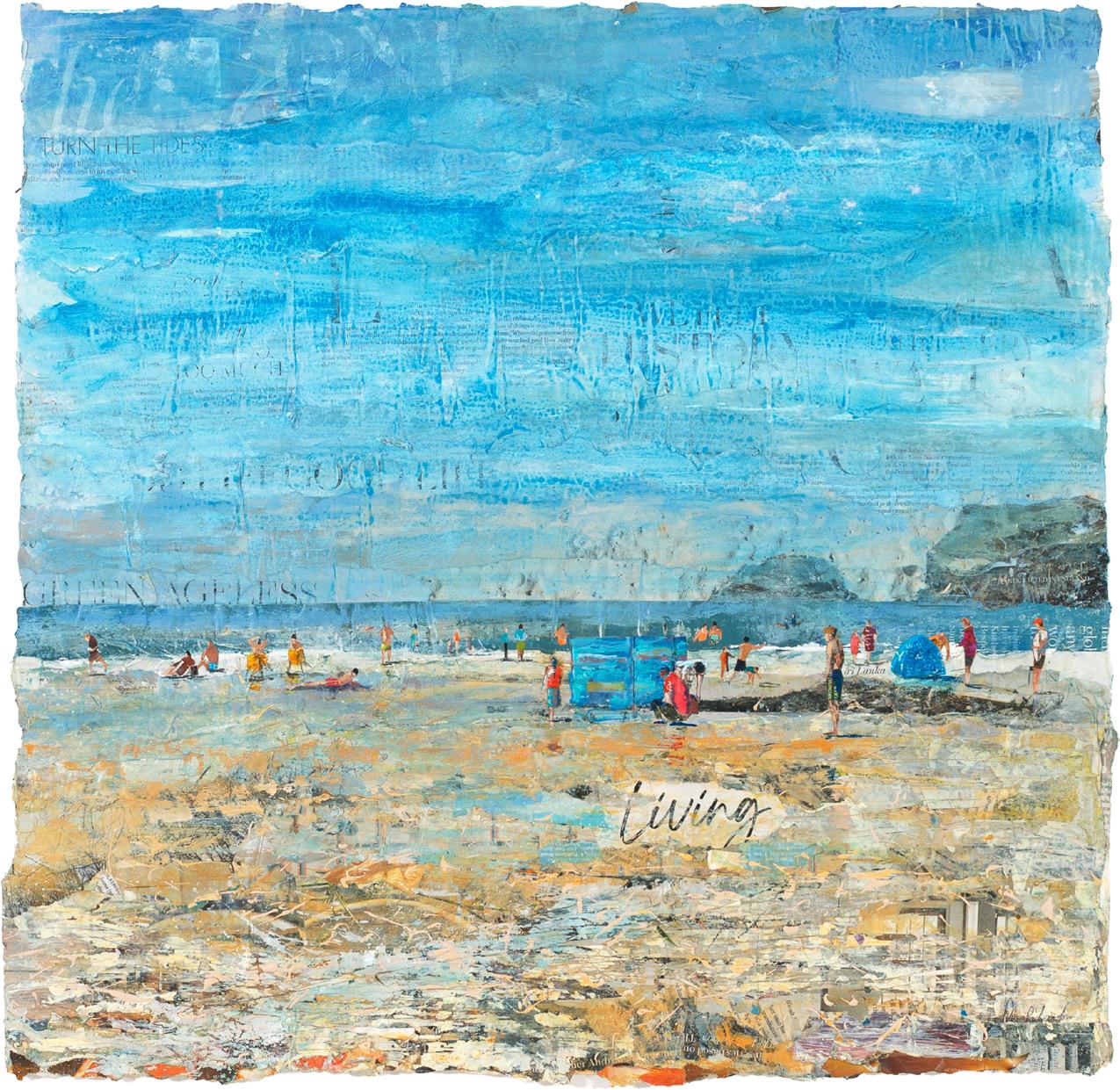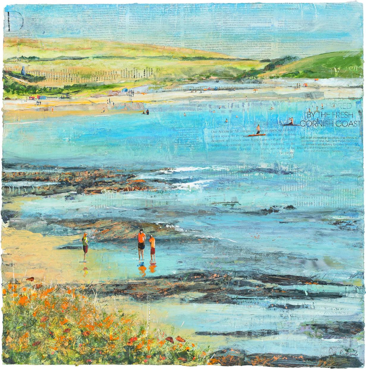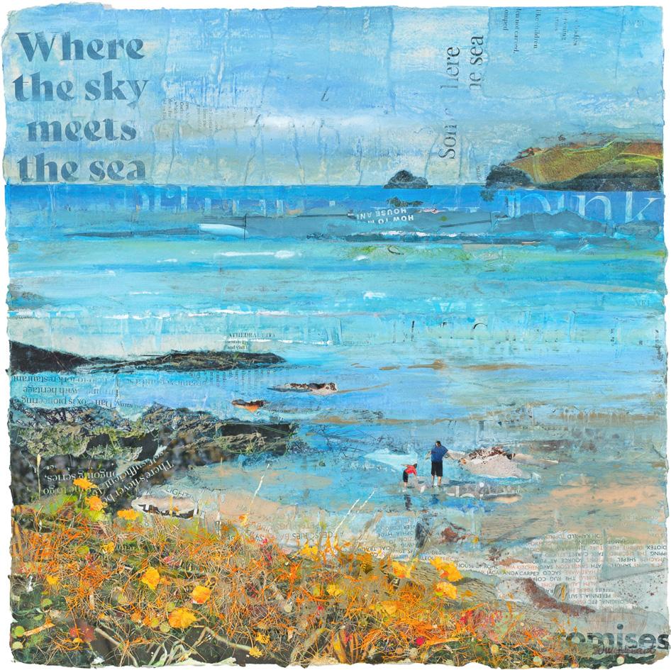 Viv’s new collection seeks out those special places of calm and quiet in the landscape. Combining painting with the freedom and experimentation of mixed media collage, she captures the beauty of Cornwall’s ocean views, far horizons and its unique feeling of open sky and space. Included works are inspired by Polzeath, Port Isaac, Pentire Point and Newland Island, as well as the cliff walk above Greenaway and views of Bray Hill and St Enodoc Church from Daymer Bay.