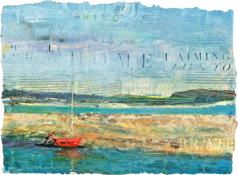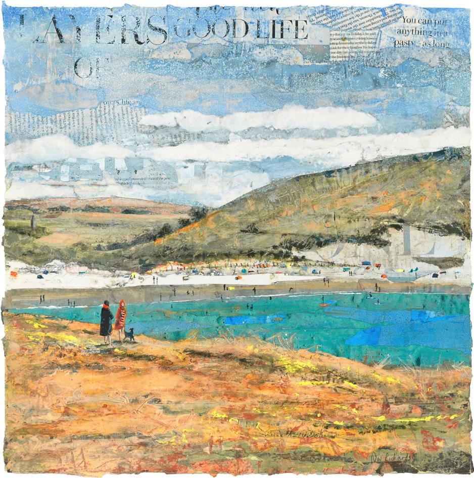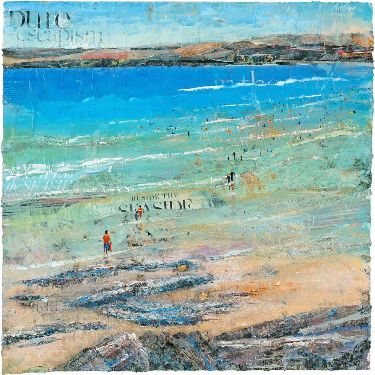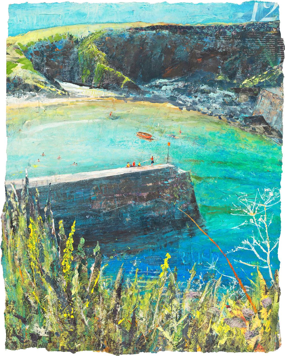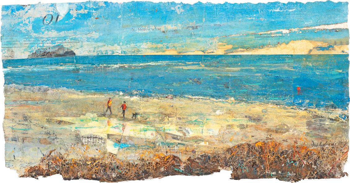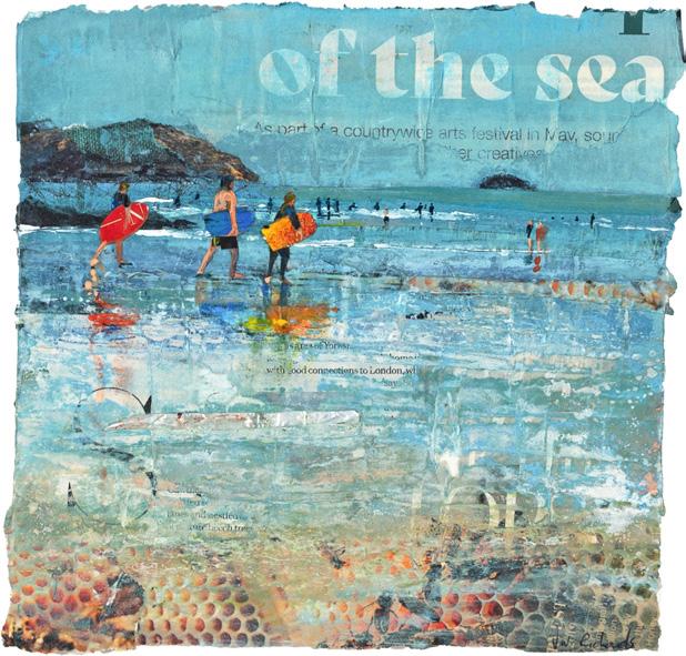 Viv’s new collection seeks out those special places of calm and quiet in the landscape. Combining painting with the freedom and experimentation of mixed media collage, she captures the beauty of Cornwall’s ocean views, far horizons and its unique feeling of open sky and space. Included works are inspired by Polzeath, Port Isaac, Pentire Point and Newland Island, as well as the cliff walk above Greenaway and views of Bray Hill and St Enodoc Church from Daymer Bay.