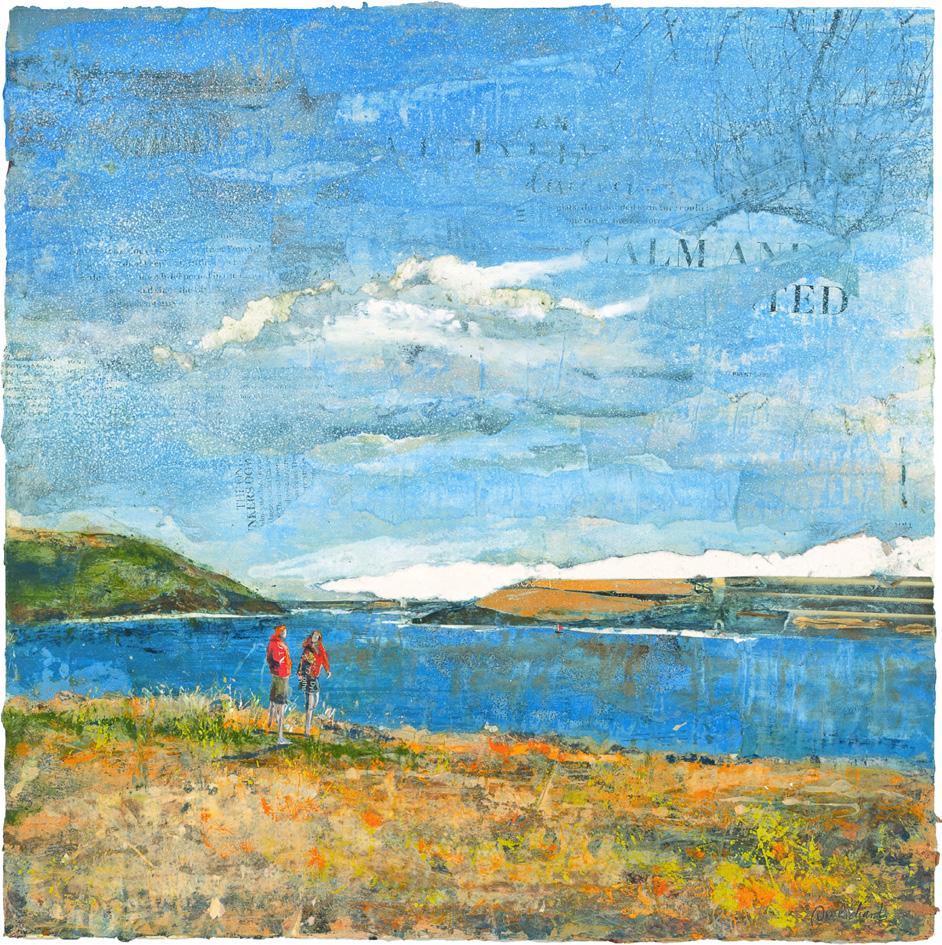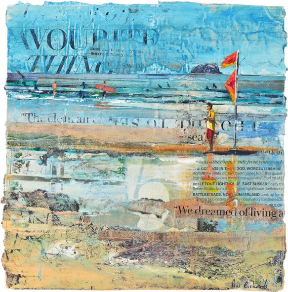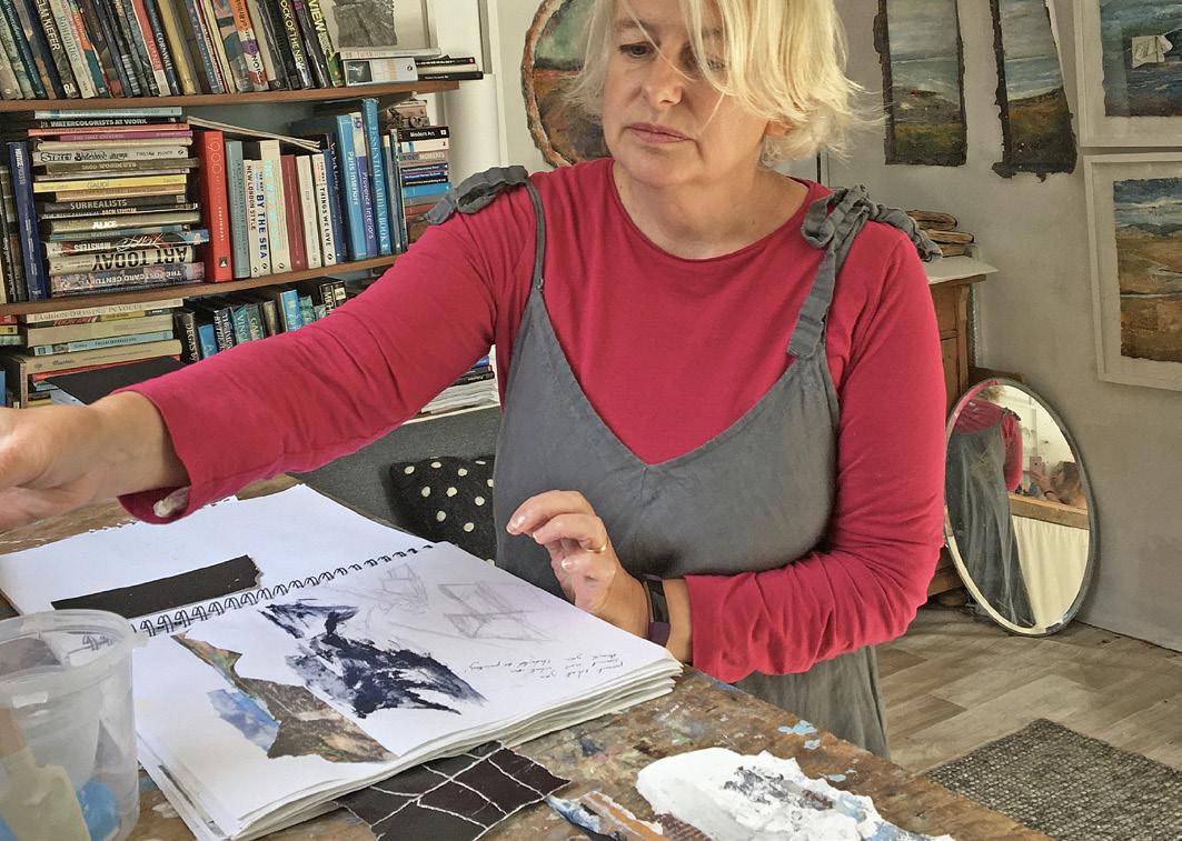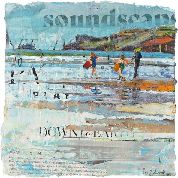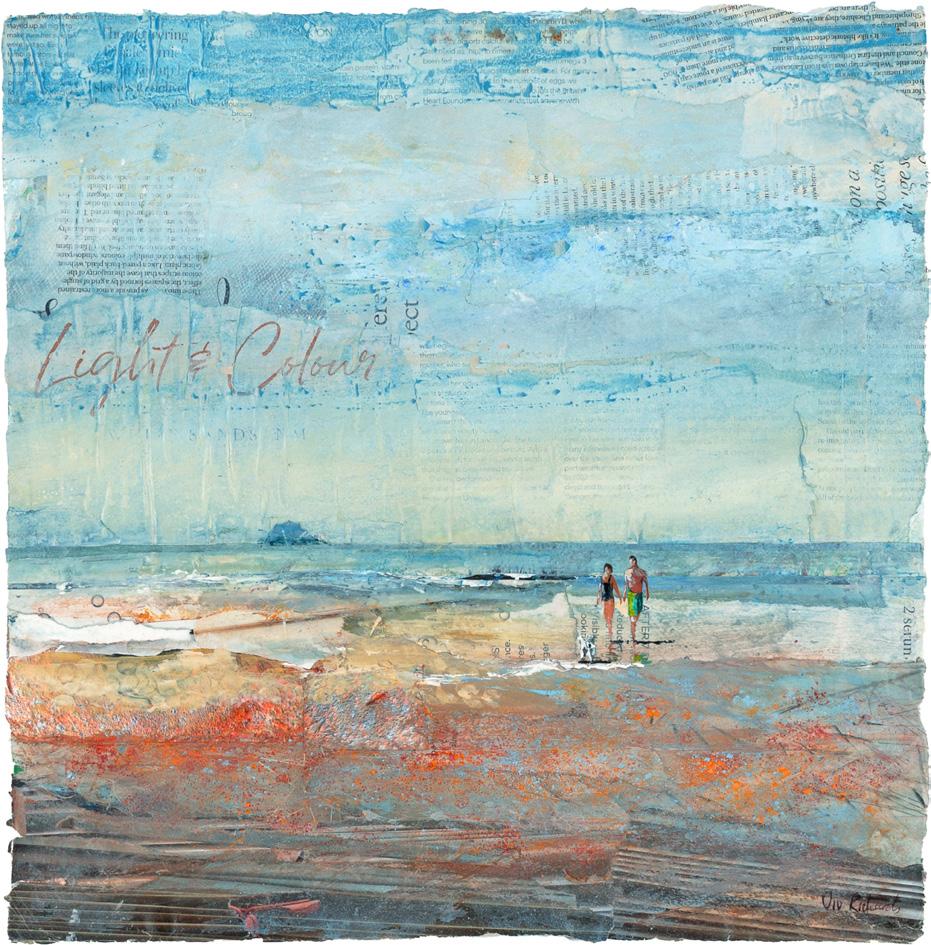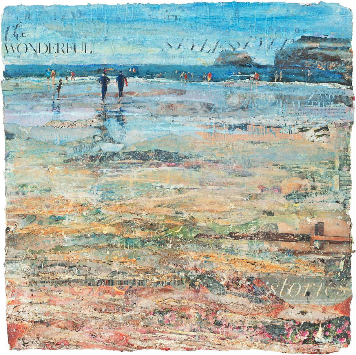 Viv’s new collection seeks out those special places of calm and quiet in the landscape. Combining painting with the freedom and experimentation of mixed media collage, she captures the beauty of Cornwall’s ocean views, far horizons and its unique feeling of open sky and space. Included works are inspired by Polzeath, Port Isaac, Pentire Point and Newland Island, as well as the cliff walk above Greenaway and views of Bray Hill and St Enodoc Church from Daymer Bay.