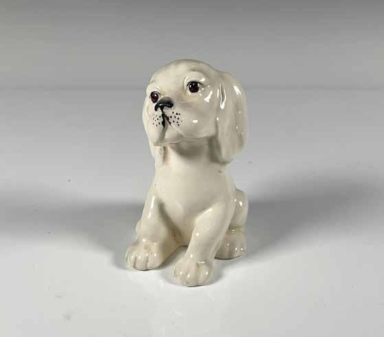 Young girl in a nurse uniform, caring for her dog, part of the Childhood Days series. Royal Doulton backstamp.