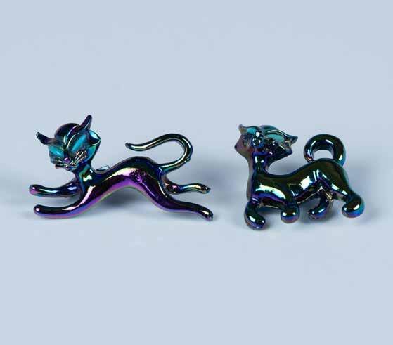 2PC SET LAUREL BURCH KESHIRE CAT PIN & CLIP-ON EARRINGS