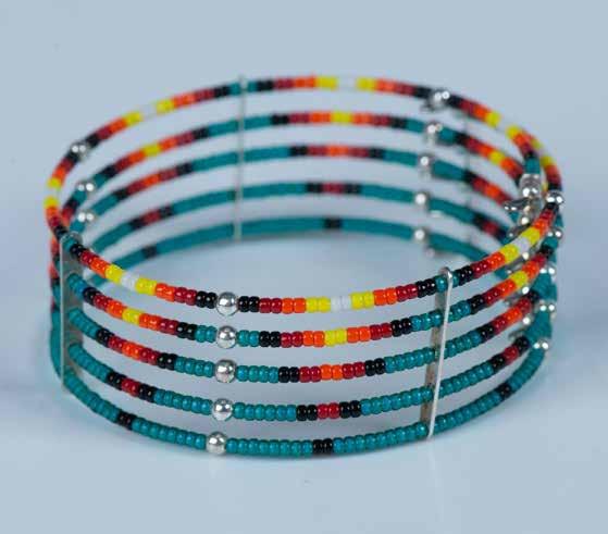 This colorful cuff bracelet with a tribal pattern measures approximately 7.75”L around the outside, but will expand.