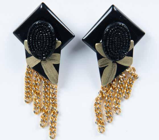 BETTY ASCH 80’S BLACK & GOLD LUCITE CLIP-ON EARRINGS, SIGNED