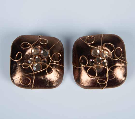 These unique clip on earrings are made from bronze tone stuffed cushions with twisted copper tone wire and champagne rhinestones.
