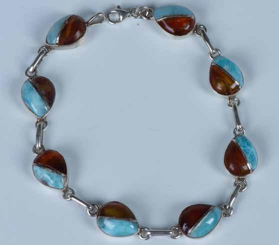 The blue and silver bracelet was made by Chipita and measures 8”L, but can be adjusted shorter. The green bracelet measures 7.5”L