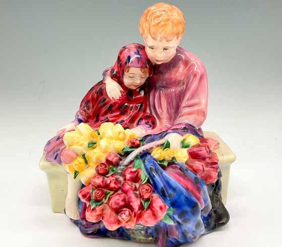 Two children brightly colored selling flowers. Royal Doulton backstamp.